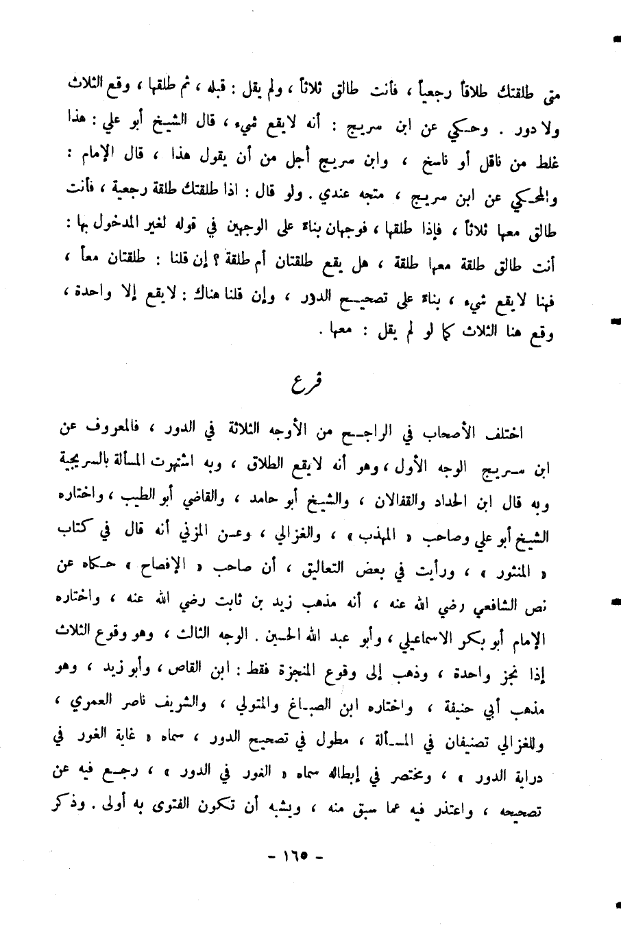 مَتَّى طَلَّقْتُكِ طَلَاقًا رَجْعِيًّا، فَأَنْتِ طَالِقٌ ثَلَاثًا، وَلَمْ يَقُلْ: قَبْلَهُ، ثُمَّ طَلَّقَهَا، وَقَعَ الثَّلَاثُ وَلَا دَوْرَ. وَحُكِيَ عَنِ ابْنِ سُرَيْجٍ: أَنَّهُ لَا يَقَعُ شَيْءٌ، قَالَ الشَّيْخُ أَبُو عَلِيٍّ: هَذَا غَلَطٌ مِنْ نَاقِلٍ أَوْ نَاسِخٍ، وَابْنُ سُرَيْجٍ أَجْلُّ مِنْ أَنْ يَقُولَ هَذَا، قَالَ الْإِمَامُ: وَالْمَحْكِيُّ عَنِ ابْنِ سُرَيْجٍ، مُتَّجَهٌ عِنْدِي. وَلَوْ قَالَ: إِذَا طَلَّقْتُكِ طَلْقَةً رَجْعِيَّةً، فَأَنْتِ طَالِقٌ مَعَهَا ثَلَاثًا، فَإِذَا طَلَّقَهَا، فَوَجْهَانِ بِنَاءً عَلَى الْوَجْهَيْنِ فِي قَوْلِهِ لِغَيْرِ الْمَدْخُولِ بِهَا: أَنْتِ طَالِقٌ طَلْقَةً مَعَهَا طَلْقَةٌ، هَلْ يَقَعُ طَلْقَتَانِ أَمْ طَلْقَةٌ؟ إِنْ قُلْنَا: طَلْقَتَانِ مَعًا، فَهُنَا لَا يَقَعُ شَيْءٌ، بِنَاءً عَلَى تَصْحِيحِ الدَّوْرِ، وَإِنْ قُلْنَا هُنَاكَ: لَا يَقَعُ إِلَّا وَاحِدَةٌ، وَقَعَ هُنَا الثَّلَاثُ كَمَا لَوْ لَمْ يَقُلْ: مَعَهَا.