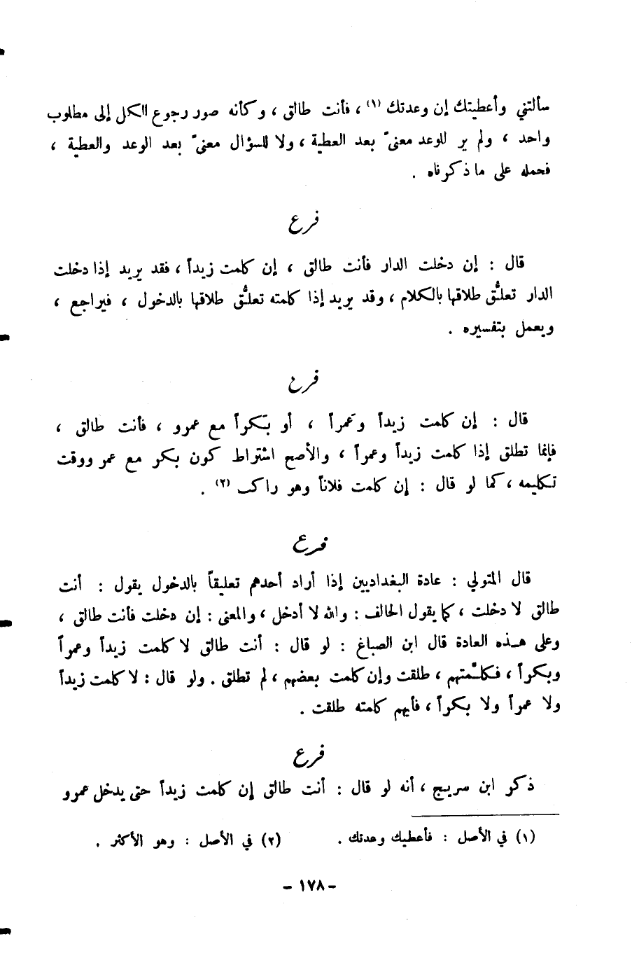 سَأَلْتِنِي وَأَعْطَيْتُكِ إِنْ وَعَدْتُكِ، فَأَنْتِ طَالِقٌ، وَكَأَنَّهُ صَوَّرَ رُجُوعَ الْكُلِّ إِلَى مَطْلُوبٍ وَاحِدٍ، وَلَمْ يَرَ لِلْوَعْدِ مَعْنًى بَعْدَ الْعَطِيَّةِ، وَلَا لِلسُّؤَالِ مَعْنًى بَعْدَ الْوَعْدِ وَالْعَطِيَّةِ، فَحَمَلَهُ عَلَى مَا ذَكَرْنَاهُ.