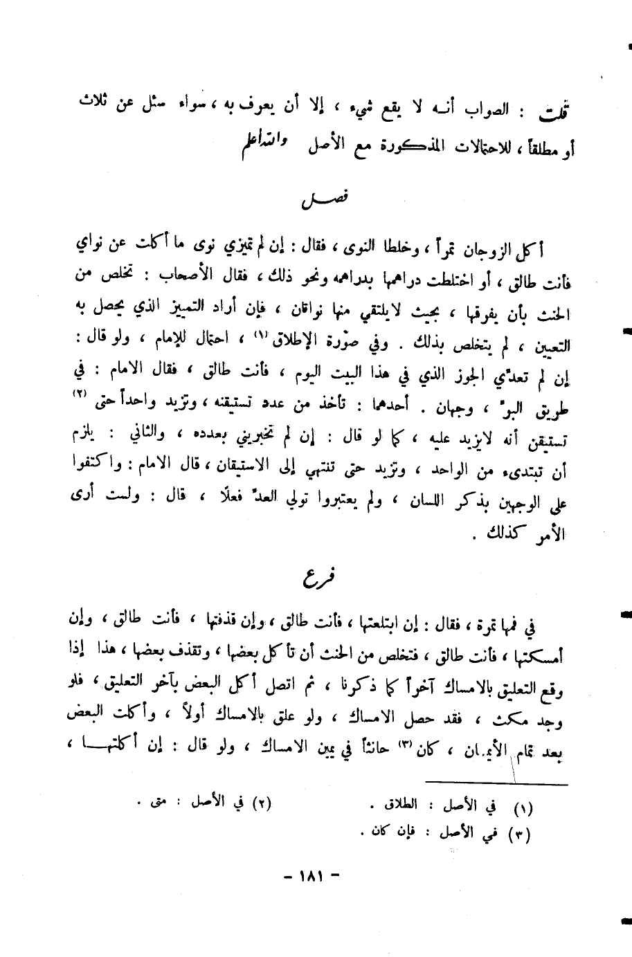 قُلْتُ: الصَّوَابُ أَنَّهُ لَا يَقَعُ شَيْءٌ، إِلَّا أَنْ يُعْرَفَ بِهِ، سَوَاءٌ سُئِلَ عَنْ ثَلَاثٍ أَوْ مُطْلَقًا، لِلِاحْتِمَالَاتِ الْمَذْكُورَةِ مَعَ الْأَصْلِ. - وَاللَّهُ أَعْلَمُ.