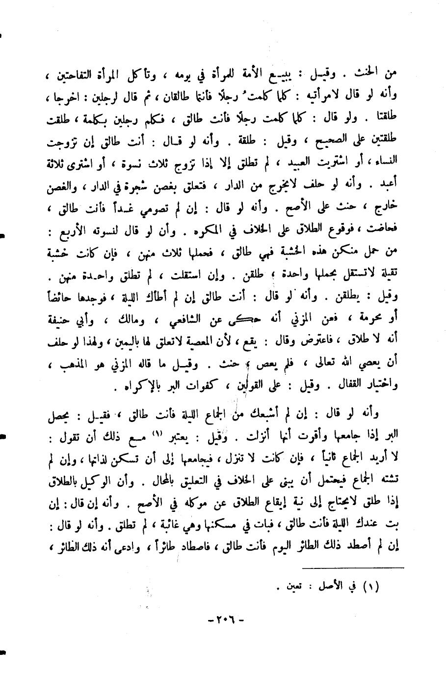مِنَ الْحِنْثِ. وَقِيلَ: يَبِيعُ الْأَمَةَ لِلْمَرْأَةِ فِي يَوْمِهِ، وَتَأْكُلُ الْمَرْأَةُ التُّفَّاحَتَيْنِ، وَأَنَّهُ لَوْ قَالَ لِامْرَأَتَيْهِ: كُلَّمَا كَلَّمْتُ رَجُلًا فَأَنْتُمَا طَالِقَانِ، ثُمَّ قَالَ لِرَجُلَيْنِ: اخْرُجَا، طُلِّقَتَا.
