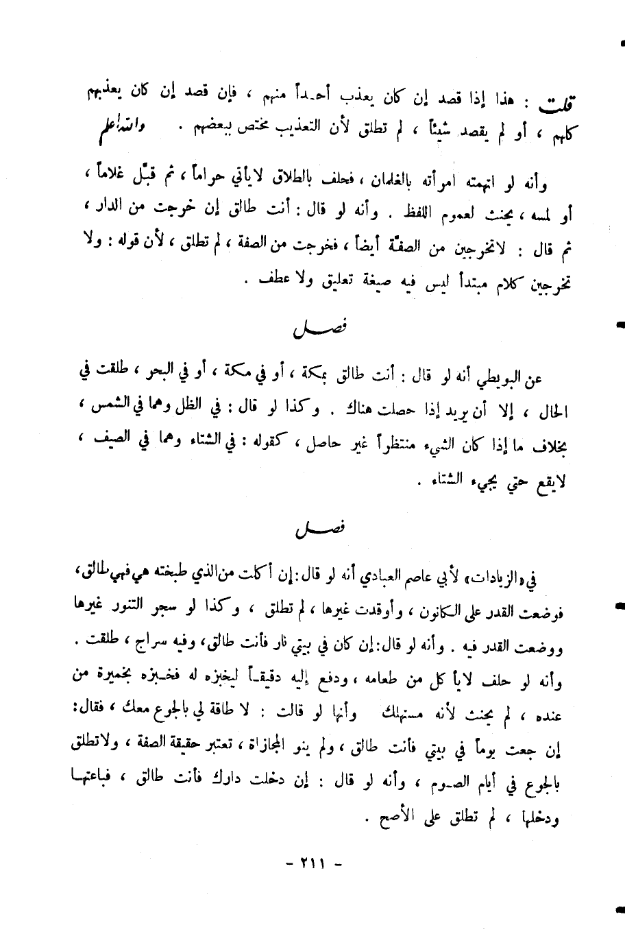 وَأَنَّهُ لَوِ اتَّهَمَتْهُ امْرَأَتُهُ بِالْغِلْمَانِ، فَحَلَفَ بِالطَّلَاقِ لَا يَأْتِي حَرَامًا، ثُمَّ قَبَّلَ غُلَامًا، أَوْ لَمَسَهُ، يَحْنَثُ لِعُمُومِ اللَّفْظِ. وَأَنَّهُ لَوْ قَالَ: أَنْتِ طَالِقٌ إِنْ خَرَجْتِ مِنَ الدَّارِ، ثُمَّ قَالَ: لَا تَخْرُجِينَ مِنَ الصُّفَّةِ أَيْضًا، فَخَرَجَتْ مِنَ الصُّفَّةِ، لَمْ تُطَلَّقْ، لِأَنَّ قَوْلَهُ: «وَلَا تَخْرُجِينَ» كَلَامٌ مُبْتَدَأٌ لَيْسَ فِيهِ صِيغَةُ تَعْلِيقٍ وَلَا عَطْفٍ.