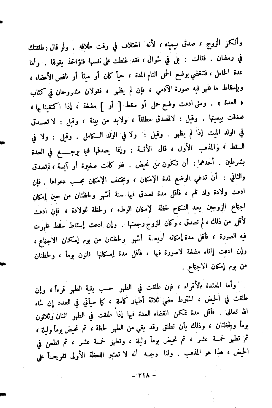 وَإِنِ ادَّعَتْ إِسْقَاطَ سَقْطٍ ظَهَرَتْ فِيهِ الصُّورَةُ، فَأَقَلُّ مُدَّةِ إِمْكَانِهِ أَرْبَعَةُ أَشْهُرٍ وَلَحْظَتَانِ مِنْ يَوْمِ إِمْكَانِ الِاجْتِمَاعِ، وَإِنِ ادَّعَتْ إِلْقَاءَ مُضْغَةٍ لَا صُورَةَ فِيهَا، فَأَقَلُّ مُدَّةِ إِمْكَانِهَا ثَمَانُونَ يَوْمًا، وَلَحْظَتَانِ مِنْ يَوْمِ إِمْكَانِ الِاجْتِمَاعِ. وَأَمَّا الْمُعْتَدَّةُ بِالْأَقْرَاءِ، فَإِنْ طُلِّقَتْ فِي الطُّهْرِ حُسِبَ بَقِيَّةُ الطُّهْرِ قُرْءًا، وَإِنْ طُلِّقَتْ فِي الْحَيْضِ، اشْتُرِطَ مُضِيُّ ثَلَاثَةِ أَطْهَارٍ كَامِلَةٍ، كَمَا سَيَأْتِي فِي الْعِدَدِ إِنْ شَاءَ اللَّهُ تَعَالَى. فَأَقَلُّ مُدَّةٍ تُمْكِنُ انْقِضَاءُ الْعِدَّةِ فِيهَا إِذَا طُلِّقَتْ فِي الطُّهْرِ اثْنَانِ وَثَلَاثُونَ يَوْمًا وَلَحْظَتَانِ، وَذَلِكَ بِأَنْ تُطَلَّقَ وَقَدْ بَقِيَ مِنَ الطُّهْرِ لَحْظَةٌ، ثُمَّ تَحِيضُ يَوْمًا وَلَيْلَةً، ثُمَّ تَطْهُرُ خَمْسَةَ عَشَرَ، ثُمَّ تَحِيضُ يَوْمًا وَلَيْلَةً، وَتَطْهُرُ خَمْسَةَ عَشَرَ، ثُمَّ تَطْعَنُ فِي الْحَيْضِ، هَذَا هُوَ الْمَذْهَبُ.