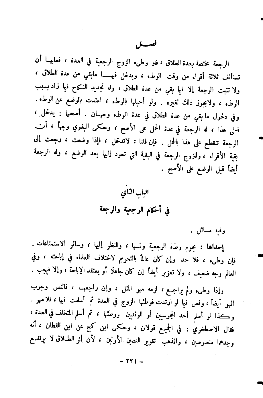 الْبَابُ الثَّانِي فِي أَحْكَامِ الرَّجْعِيَّةِ وَالرَّجْعَةِ