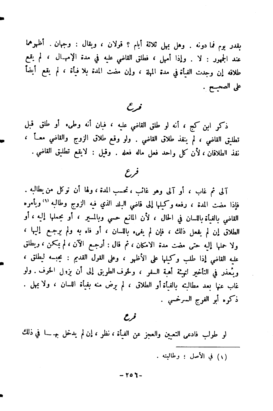 وَهَلْ يُمْهَلُ ثَلَاثَةَ أَيَّامٍ؟ قَوْلَانِ، وَيُقَالُ: وَجْهَانِ. أَظْهَرُهُمَا عِنْدَ الْجُمْهُورِ: لَا. وَإِذَا أُمْهِلَ، فَطَلَّقَ الْقَاضِي عَلَيْهِ فِي مُدَّةِ الْإِمْهَالِ، لَمْ يَقَعْ طَلَاقُهُ إِنْ وُجِدَتِ الْفَيْأَةُ فِي مُدَّةِ الْمُهْلَةِ، وَإِنْ مَضَتِ الْمُدَّةُ بِلَا فَيْأَةٍ، لَمْ يَقَعْ أَيْضًا عَلَى الصَّحِيحِ.