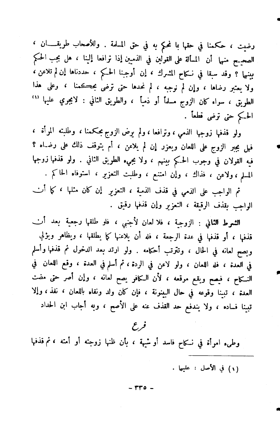 ثُمَّ الْوَاجِبُ عَلَى الذِّمِّيِّ فِي قَذْفِ الذِّمِّيَّةِ، التَّعْزِيرُ إِنْ كَانَ مِثْلَهَا، كَمَا أَنَّ الْوَاجِبَ بِقَذْفِ الرَّقِيقَةِ، التَّعْزِيرُ وَإِنْ قَذَفَهَا رَقِيقٌ.