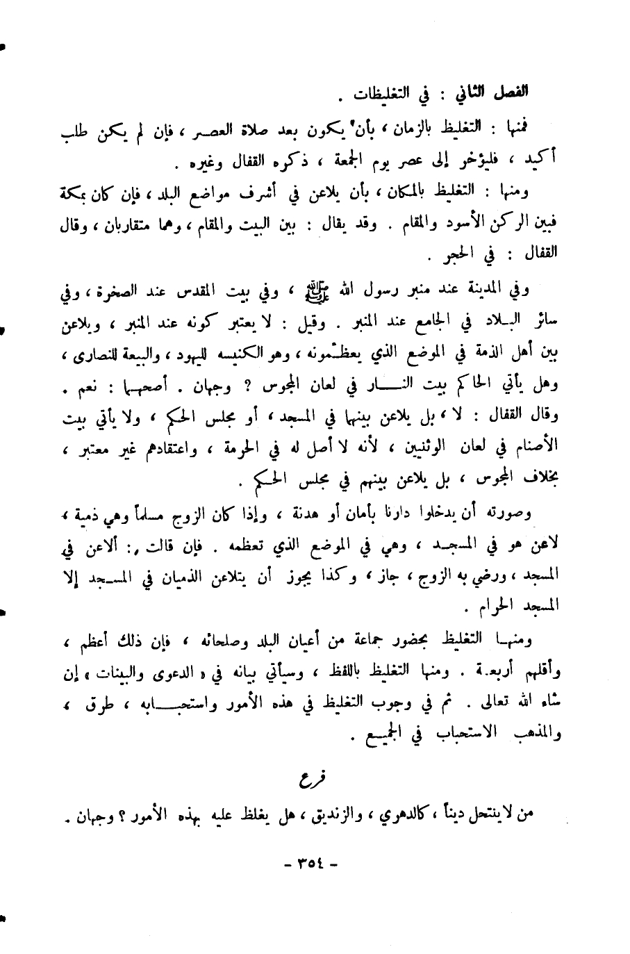 الْفَصْلُ الثَّانِي: فِي التَّغْلِيظَاتِ.