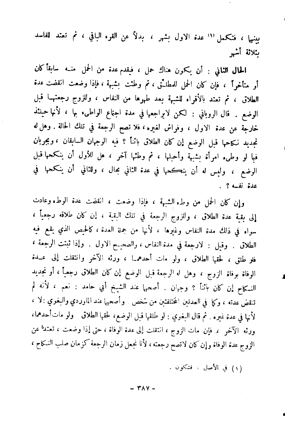 وَإِنْ كَانَ الْحَمْلُ مِنْ وَطْءِ الشُّبْهَةِ، فَإِذَا وَضَعَتْ، انْقَضَتْ عِدَّةُ الْوَطْءِ وَعَادَتْ إِلَى بَقِيَّةِ عِدَّةِ الطَّلَاقِ، وَلِلزَّوْجِ الرَّجْعَةُ فِي تِلْكَ الْبَقِيَّةِ، إِنْ كَانَ طَلَاقُهُ رَجْعِيًّا، سَوَاءٌ فِي ذَلِكَ مُدَّةُ النِّفَاسِ وَغَيْرُهَا، لِأَنَّهَا مِنْ جُمْلَةِ الْعِدَّةِ، كَالْحَيْضِ الَّذِي يَقَعُ فِيهِ الطَّلَاقُ. وَقِيلَ: لَا رَجْعَةَ فِي مُدَّةِ النِّفَاسِ، وَالصَّحِيحُ الْأَوَّلُ. وَإِذَا ثَبَتَتِ الرَّجْعَةُ، فَلَوْ طَلَّقَ، لَحِقَهَا الطَّلَاقُ، وَلَوْ مَاتَ أَحَدُهُمَا، وَرِثَهُ الْآخَرُ وَانْتَقَلَتْ إِلَى عِدَّةِ الْوَفَاةِ بِوَفَاةِ الزَّوْجِ، وَهَلْ لَهُ الرَّجْعَةُ قَبْلَ الْوَضْعِ إِنْ كَانَ الطَّلَاقُ رَجْعِيًّا، أَوْ تَجْدِيدُ النِّكَاحِ إِنْ كَانَ بَائِنًا؟ وَجْهَانِ. أَصَحُّهُمَا عِنْدَ الشَّيْخِ أَبِي حَامِدٍ: نَعَمْ، لِأَنَّهُ لَمْ تَنْقَضِ عِدَّتُهُ، وَكَمَا فِي الْعِدَّتَيْنِ الْمُخْتَلِفَتَيْنِ مِنْ شَخْصٍ. وَأَصَحُّهُمَا عِنْدَ الْمَاوَرْدِيِّ وَالْبَغَوِيِّ: لَا، لِأَنَّهَا فِي عِدَّةِ غَيْرِهِ. ثُمَّ قَالَ الْبَغَوِيُّ: لَوْ طَلَّقَهَا قَبْلَ الْوَضْعِ، لَحِقَهَا الطَّلَاقُ وَلَوْ مَاتَ أَحَدُهُمَا، وَرِثَهُ الْآخَرُ، فَإِنْ مَاتَ الزَّوْجُ، انْتَقَلَتْ إِلَى عِدَّةِ الْوَفَاةِ، حَتَّى إِذَا وَضَعَتْ، تَعْتَدُّ عَنِ الزَّوْجِ عِدَّةَ الْوَفَاةِ وَإِنْ كَانَ لَا تَصِحُّ رَجْعَتُهُ، لِأَنَّا نَجْعَلُ زَمَانَ الرَّجْعَةِ كَزَمَانِ صُلْبِ النِّكَاحِ،