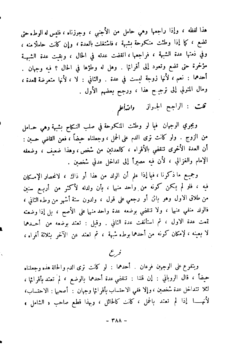 هَذَا لَفْظُهُ، وَإِذَا رَاجَعَهَا وَهِيَ حَامِلٌ مِنَ الْأَجْنَبِيِّ، وَجَوَّزْنَاهُ، فَلَيْسَ لَهُ الْوَطْءُ حَتَّى تَضَعَ، كَمَا إِذَا وُطِئَتْ مَنْكُوحَةٌ بِشُبْهَةٍ، فَاشْتَغَلَتْ بِالْعِدَّةِ، وَإِنْ كَانَتْ حَامِلًا مِنْهُ، وَفِي ذِمَّتِهَا عِدَّةُ الشُّبْهَةِ، فَرَاجَعَهَا، انْقَضَتْ عِدَّتُهُ فِي الْحَالِ، وَبَقِيَتْ عِدَّةُ الشُّبْهَةِ مُؤَخَّرَةً حَتَّى تَضَعَ وَتَعُودَ إِلَى أَقْرَائِهَا. وَهَلْ لَهُ وَطْؤُهَا فِي الْحَالِ؟ فِيهِ وَجْهَانِ. أَحَدُهُمَا: نَعَمْ، لِأَنَّهَا زَوْجَةٌ لَيْسَتْ فِي عِدَّةٍ. وَالثَّانِي: لَا، لِأَنَّهَا مُتَعَرِّضَةٌ لِلْعِدَّةِ، وَمَالَ الْمُتَوَلِّي إِلَى تَرْجِيحِ هَذَا، وَرَجَّحَ بَعْضُهُمُ الْأَوَّلَ.