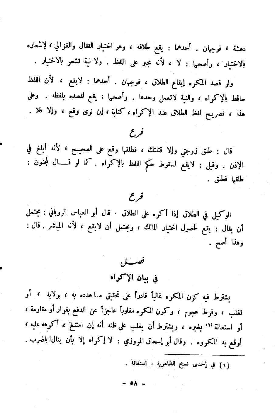 وَلَوْ قَصَدَ الْمُكْرَهُ إِيقَاعَ الطَّلَاقِ، فَوَجْهَانِ. أَحَدُهُمَا: لَا يَقَعُ، لِأَنَّ اللَّفْظَ سَاقِطٌ بِالْإِكْرَاهِ، وَالنِّيَّةُ لَا تَعْمَلُ وَحْدَهَا. وَأَصَحُّهُمَا: يَقَعُ لِقَصْدِهِ بِلَفْظِهِ. وَعَلَى هَذَا، فَصَرِيحُ لَفْظِ الطَّلَاقِ عِنْدَ الْإِكْرَاهِ، كِنَايَةٌ، إِنْ نَوَى وَقَعَ، وَإِلَّا فَلَا.