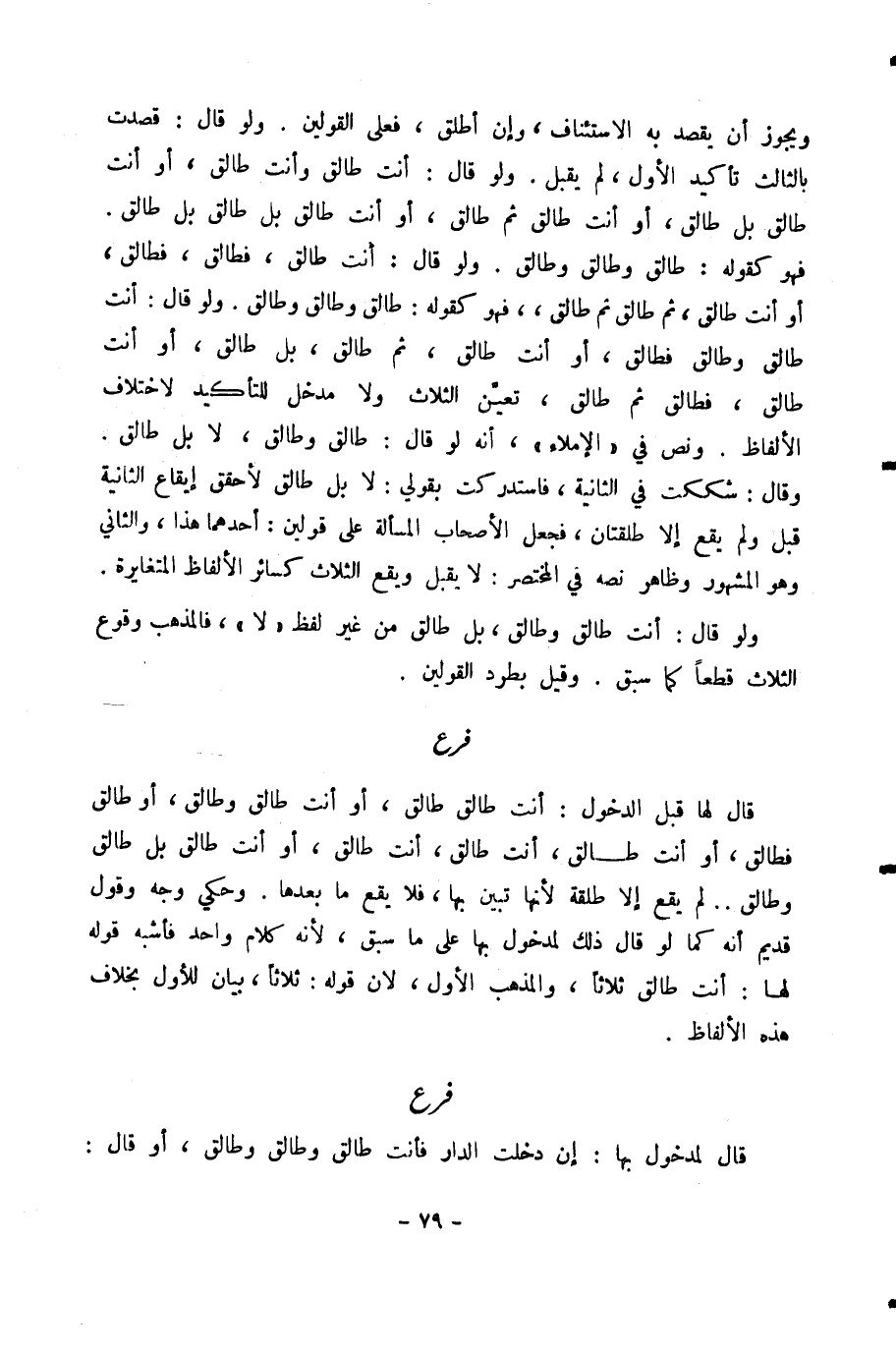 قَالَ لِمَدْخُولٍ بِهَا: إِنْ دَخَلْتِ الدَّارَ فَأَنْتِ طَالِقٌ وَطَالِقٌ وَطَالِقٌ، أَوْ قَالَ: