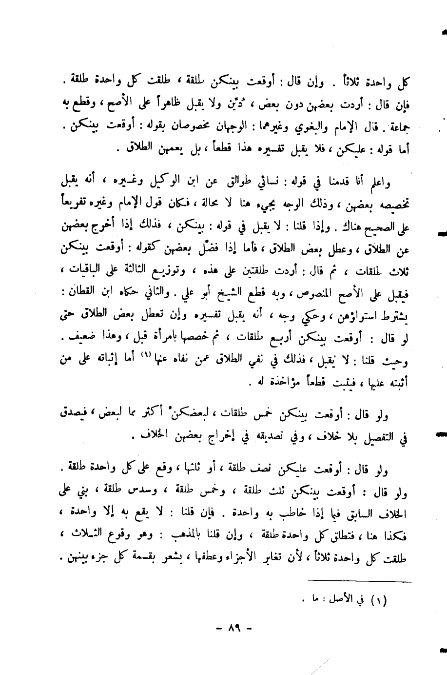 وَاعْلَمْ أَنَّا قَدَّمْنَا فِي قَوْلِهِ: نِسَائِي طَوَالِقُ عَنِ ابْنِ الْوَكِيلِ وَغَيْرِهِ، أَنَّهُ يُقْبَلُ تَخْصِيصُهُ بَعْضَهُنَّ، وَذَلِكَ الْوَجْهُ يَجِيءُ هُنَا لَا مَحَالَةَ، فَكَانَ قَوْلُ الْإِمَامِ وَغَيْرِهِ تَفْرِيعًا عَلَى الصَّحِيحِ هُنَاكَ. وَإِذَا قُلْنَا: لَا يُقْبَلُ فِي قَوْلِهِ: بَيْنَكُنَّ، فَذَلِكَ إِذَا أَخْرَجَ بَعْضَهُنَّ عَنِ الطَّلَاقِ، وَعَطَّلَ بَعْضَ الطَّلَاقِ، فَأَمَّا إِذَا فَضَّلَ بَعْضَهُنَّ كَقَوْلِهِ: أَوْقَعْتُ بَيْنَكُنَّ ثَلَاثَ طَلَقَاتٍ، ثُمَّ قَالَ: أَرَدْتُ طَلْقَتَيْنِ عَلَى هَذِهِ، وَتَوْزِيعَ الثَّالِثَةِ عَلَى الْبَاقِيَاتِ، فَيُقْبَلُ عَلَى الْأَصَحِّ الْمَنْصُوصِ، وَبِهِ قَطَعَ الشَّيْخُ أَبُو عَلِيٍّ. وَالثَّانِي حَكَاهُ ابْنُ الْقَطَّانِ: يُشْتَرَطُ اسْتِوَاؤُهُنَّ، وَحُكِيَ وَجْهٌ، أَنَّهُ يُقْبَلُ تَفْسِيرُهُ وَإِنْ تَعَطَّلَ بَعْضُ الطَّلَاقِ حَتَّى لَوْ قَالَ: أَوْقَعْتُ بَيْنَكُنَّ أَرْبَعَ طَلَقَاتٍ، ثُمَّ خَصَّصَهَا بِامْرَأَةٍ قُبِلَ، وَهَذَا ضَعِيفٌ. وَحَيْثُ قُلْنَا: لَا يُقْبَلُ، فَذَلِكَ فِي نَفْيِ الطَّلَاقِ عَمَّنْ نَفَاهُ عَنْهَا أَمَّا إِثْبَاتُهُ عَلَى مَنْ أَثْبَتَهُ عَلَيْهَا، فَيَثْبُتُ قَطْعًا مُؤَاخَذَةً لَهُ.