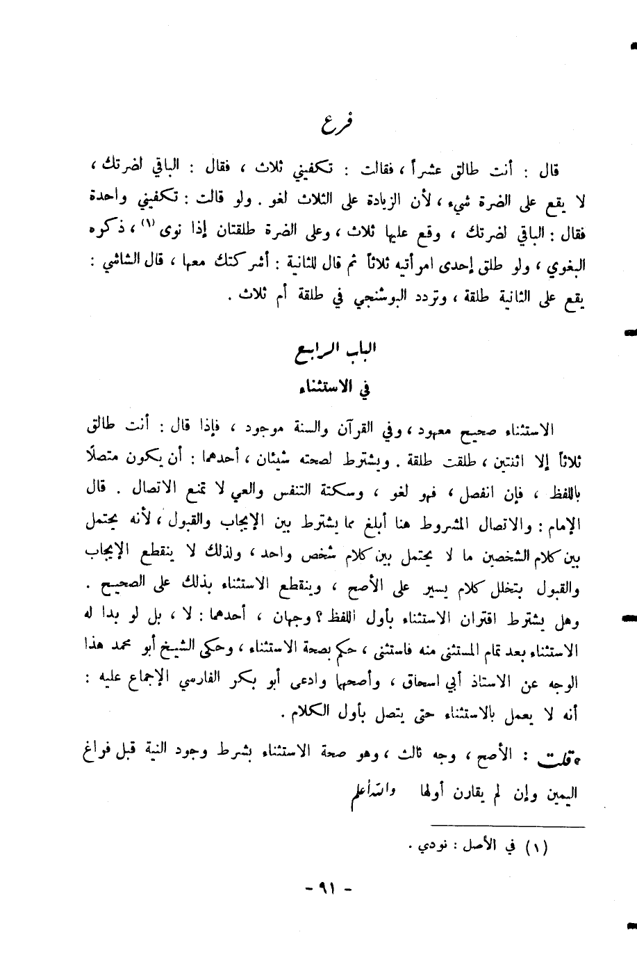 الْبَابُ الرَّابِعُ فِي الِاسْتِثْنَاءِ