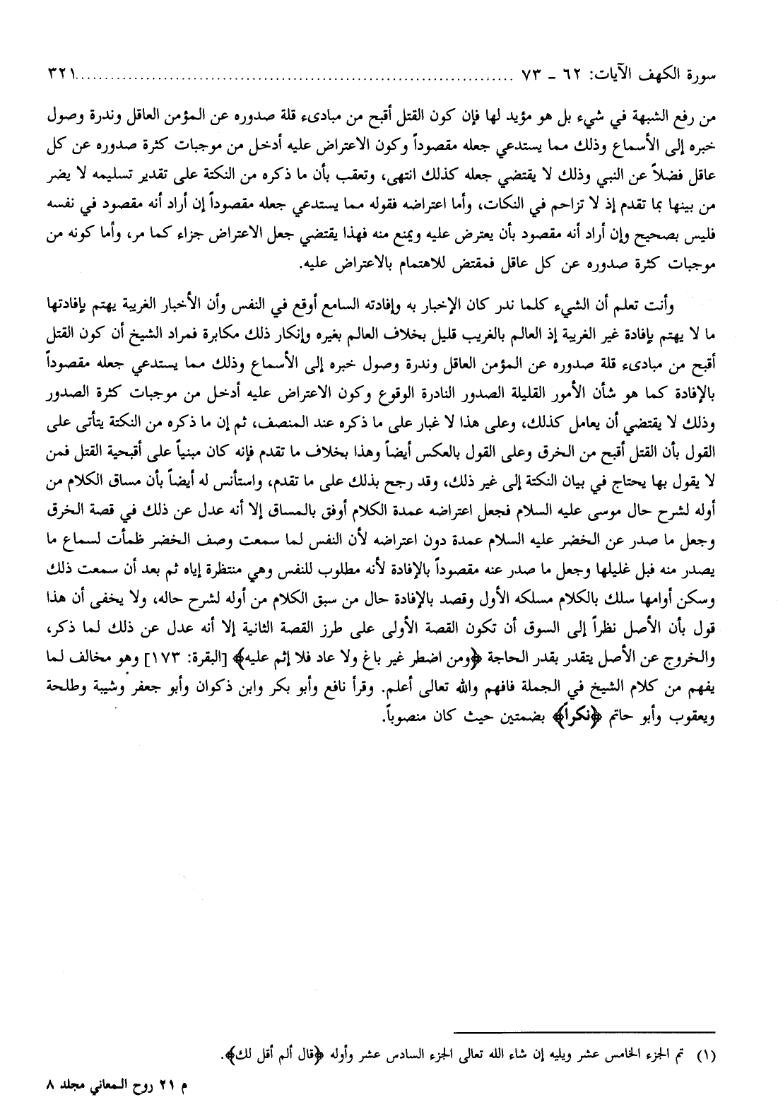 (¬1) تم الجزء الخامس عشر ويليه إن شاء الله تعالى الجزء السادس عشر وأوله قالَ أَلَمْ أَقُلْ لَكَ.