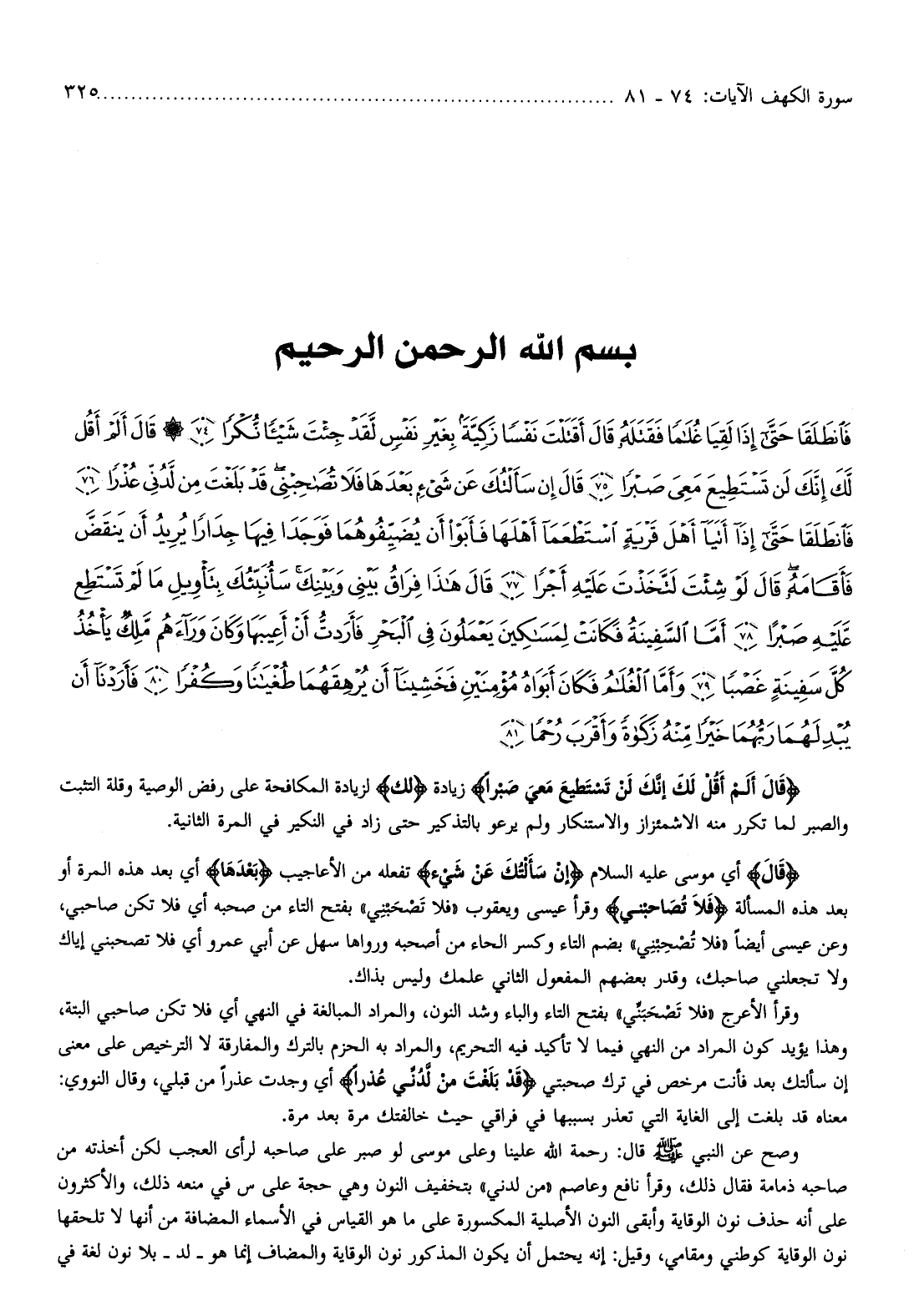 وقرأ الأعرج «فلا تصحبنّي» بفتح التاء والباء وشد النون، والمراد المبالغة في النهي أي فلا تكن صاحبي البتة، وهذا يؤيد كون المراد من النهي فيما لا تأكيد فيه التحريم، والمراد به الحزم بالترك والمفارقة لا الترخيص على معنى إن سألتك بعد فأنت مرخص في ترك صحبتي قَدْ بَلَغْتَ مِنْ لَدُنِّي عُذْراً أي وجدت عذرا من قبلي، وقال النووي:
