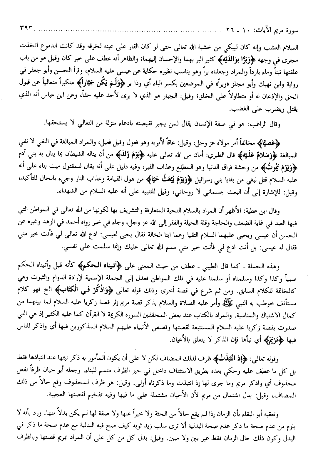 وقال ابن عطية: الأظهر أن المراد بالسلام التحية المتعارفة والتشريف بها لكونها من الله تعالى في المواطن التي فيها العبد في غاية الضعف والحاجة وقلة الحيلة والفقر إلى الله عز وجل، وجاء في خبر رواه أحمد في الزهد وغيره عن الحسن أن عيسى ويحيى عليهما السّلام التقيا وهما ابنا الخالة فقال يحيى لعيسى: ادع الله تعالى لي فأنت خير مني فقال له عيسى: بل أنت ادع لي فأنت خير مني سلم الله تعالى عليك وإنما سلمت على نفسي.