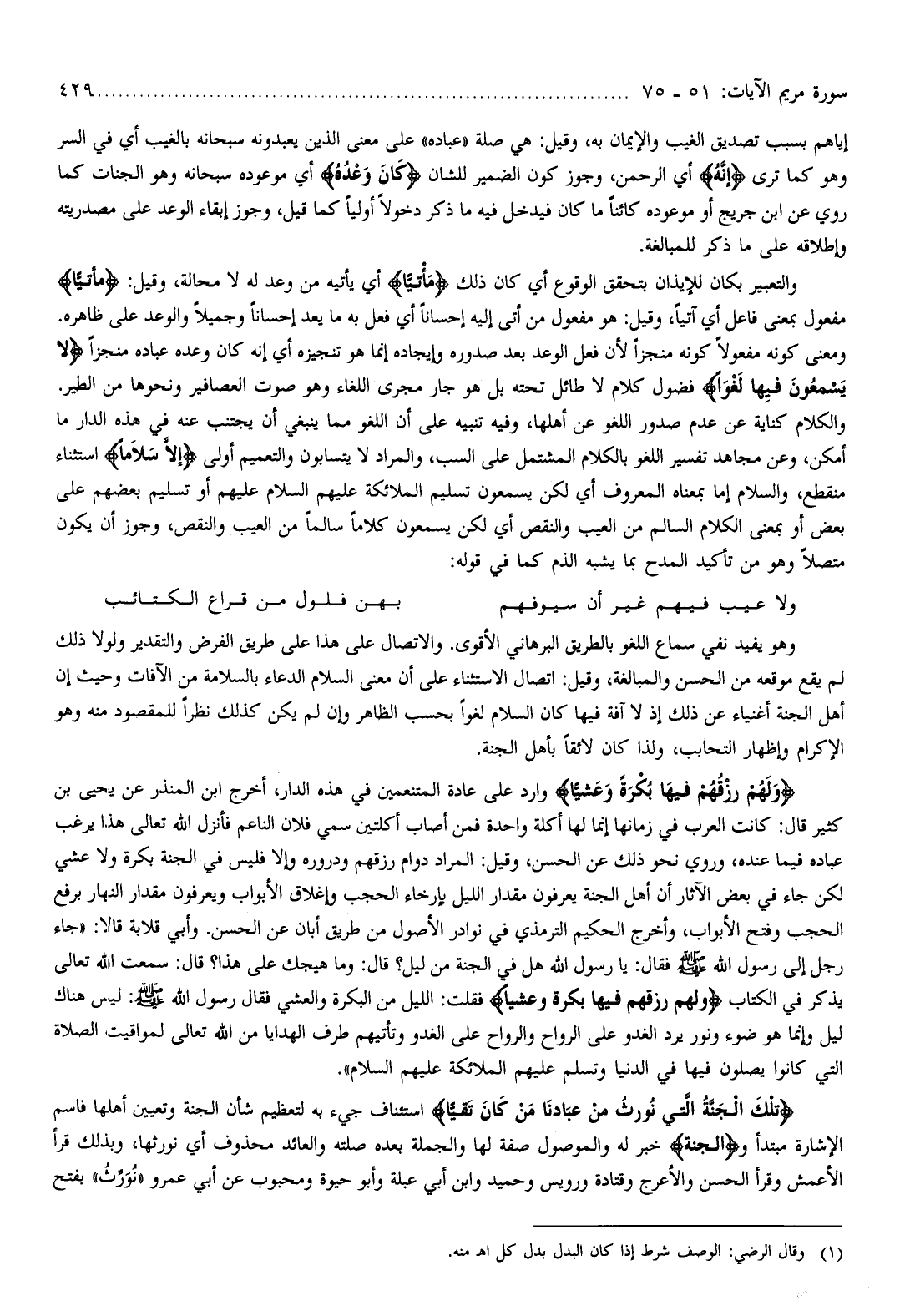 ومعنى كونه مفعولا كونه منجزا لأن فعل الوعد بعد صدوره وإيجاده إنما هو تنجيزه أي إنه كان وعده عباده منجزا لا يَسْمَعُونَ فِيها لَغْواً فضول كلام لا طائل تحته بل هو جار مجرى اللغاء وهو صوت العصافير ونحوها من الطير.