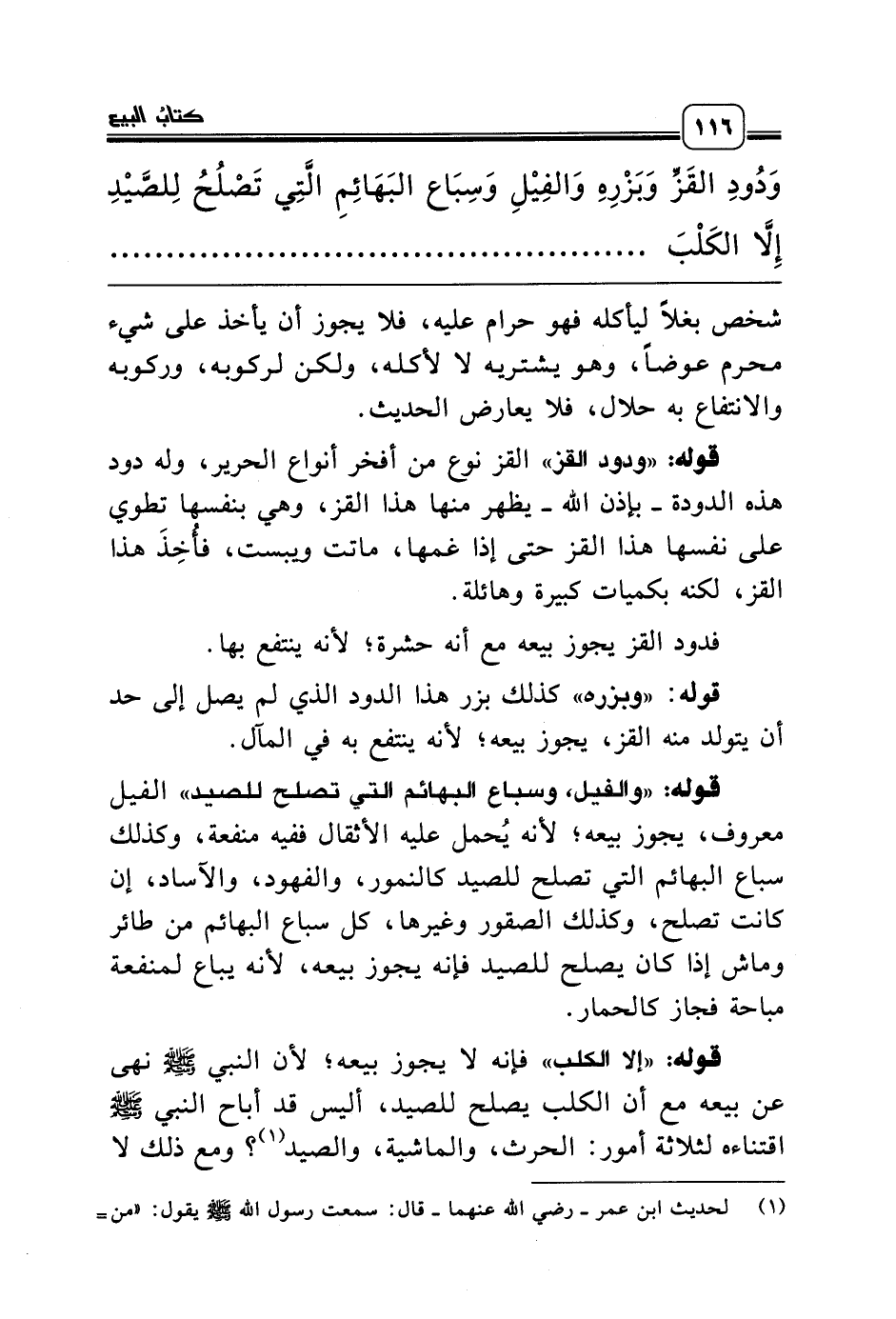 قوله: «والفيل، وسباع البهائم التي تصلح للصيد» الفيل معروف، يجوز بيعه؛ لأنه يُحمل عليه الأثقال ففيه منفعة، وكذلك سباع البهائم التي تصلح للصيد كالنمور، والفهود، والآساد، إن كانت تصلح، وكذلك الصقور وغيرها، كل سباع البهائم من طائر وماش إذا كان يصلح للصيد فإنه يجوز بيعه، لأنه يباع لمنفعة مباحة فجاز كالحمار.