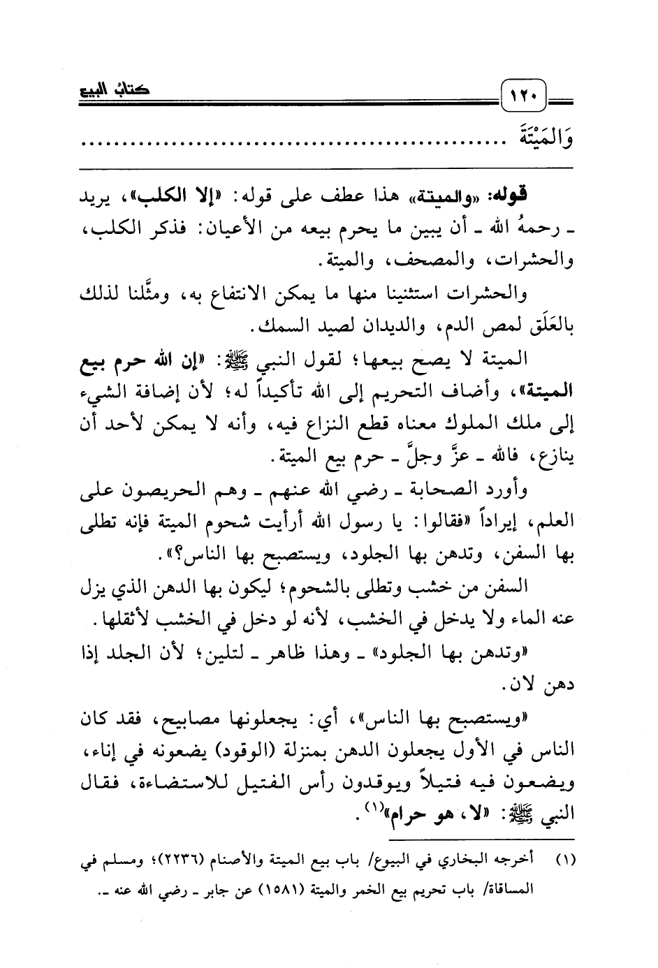 (¬1) أخرجه البخاري في البيوع/ باب بيع الميتة والأصنام (2236)؛ ومسلم في المساقاة/ باب تحريم بيع الخمر والميتة (1581) عن جابر ـ رضي الله عنه ـ.