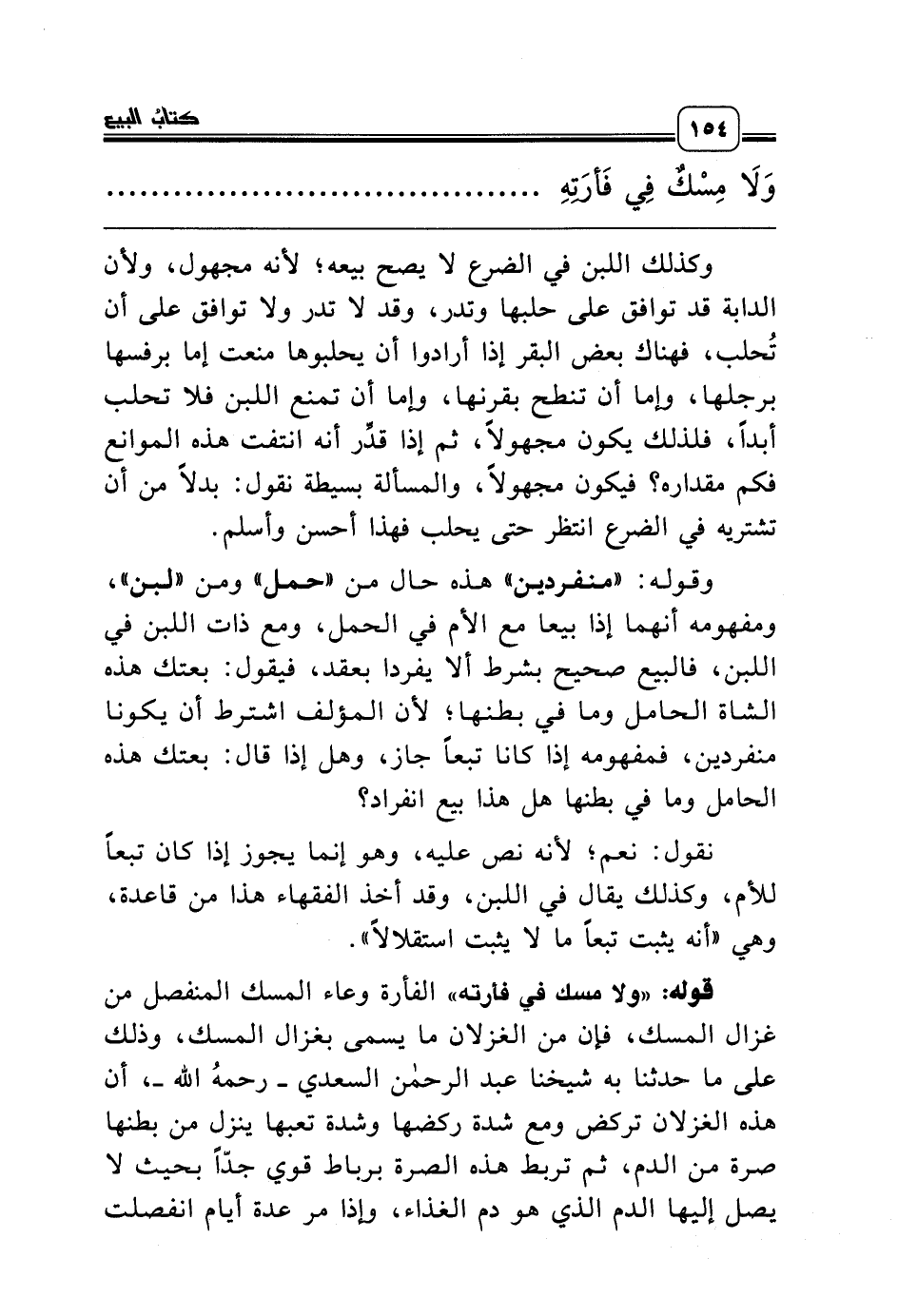 قوله: «ولا مسك في فأرته» الفأرة وعاء المسك المنفصل من غزال المسك، فإن من الغزلان ما يسمى بغزال المسك، وذلك على ما حدثنا به شيخنا عبد الرحمن السعدي ـ رحمه الله ـ، أن هذه الغزلان تركض ومع شدة ركضها وشدة تعبها ينزل من بطنها صرة من الدم، ثم تربط هذه الصرة برباط قوي جدّاً بحيث لا يصل إليها الدم الذي هو دم الغذاء، وإذا مر عدة أيام انفصلت