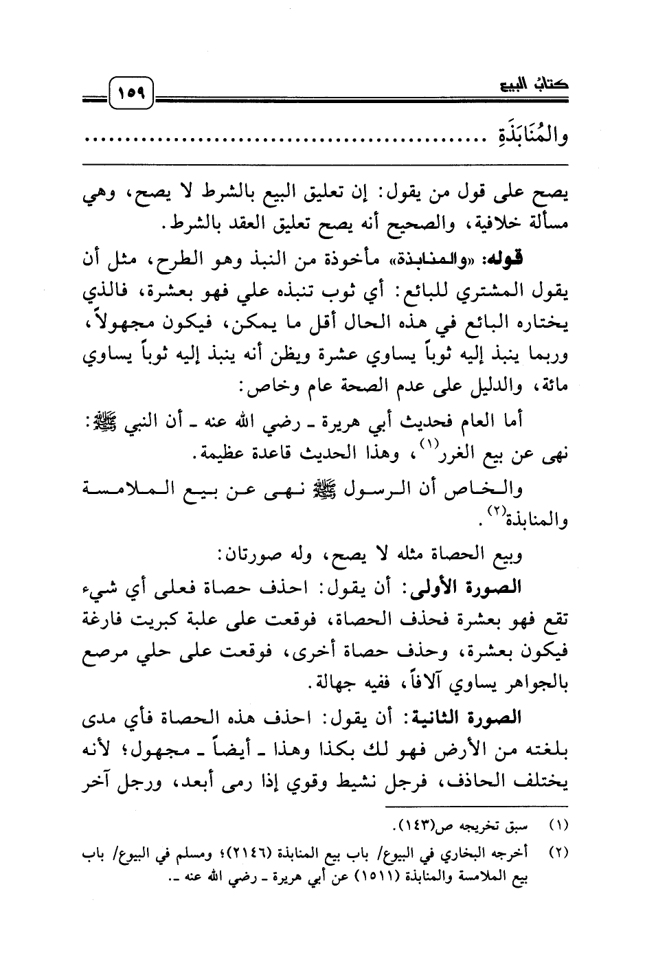 (¬2) أخرجه البخاري في البيوع/ باب بيع المنابذة (2146)؛ ومسلم في البيوع/ باب بيع الملامسة والمنابذة (1511) عن أبي هريرة ـ رضي الله عنه ـ.