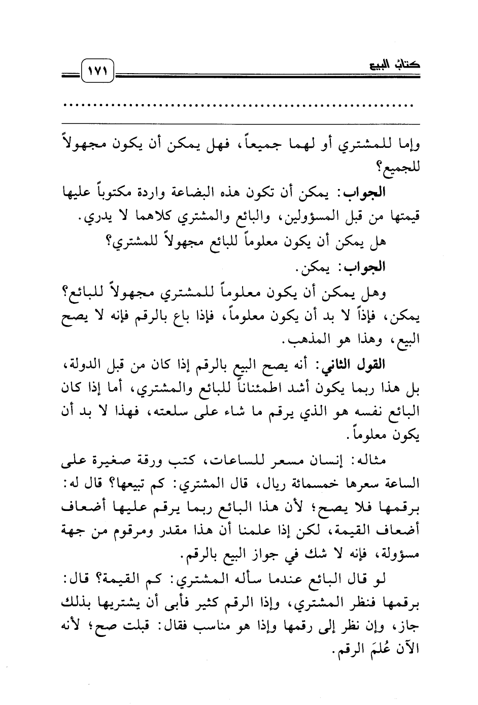 لو قال البائع عندما سأله المشتري: كم القيمة؟ قال: برقمها فنظر المشتري، وإذا الرقم كثير فأبى أن يشتريها بذلك جاز، وإن نظر إلى رقمها وإذا هو مناسب فقال: قبلت صح؛ لأنه الآن عُلمَ الرقم.