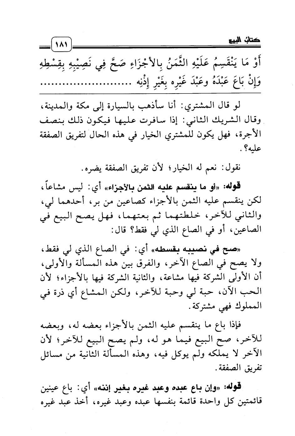 قوله: «أو ما ينقسم عليه الثمن بالأجزاء» أي: ليس مشاعاً، لكن ينقسم عليه الثمن بالأجزاء كصاعين من بر، أحدهما لي، والثاني للآخر، خلطتهما ثم بعتهما، فهل يصح البيع في الصاعين، أو في الصاع الذي لي فقط؟ قال: