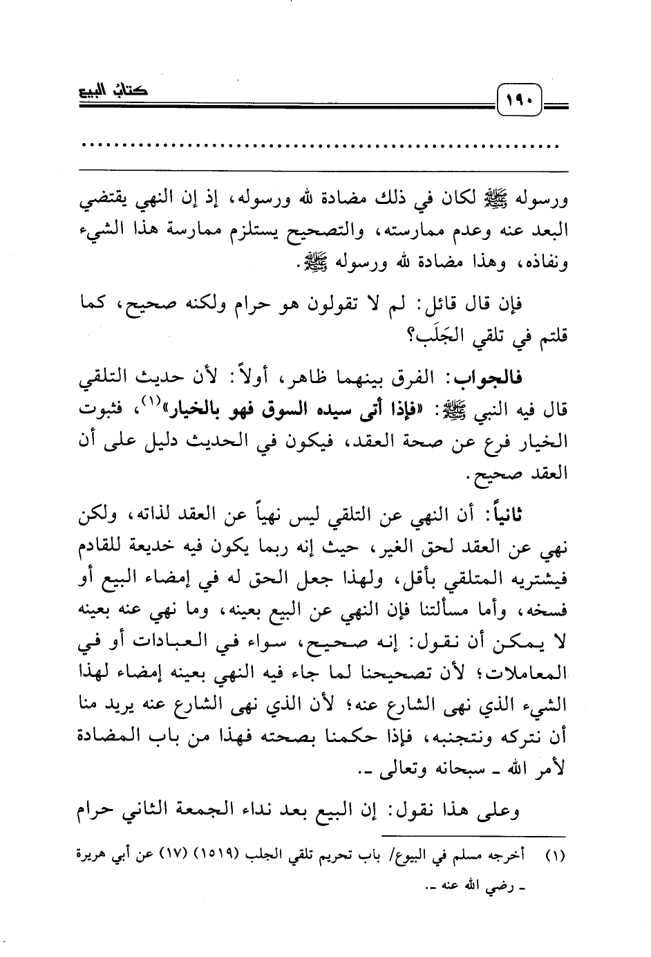 (¬1) أخرجه مسلم في البيوع/ باب تحريم تلقي الجلب (1519) (17) عن أبي هريرة ـ رضي الله عنه ـ.