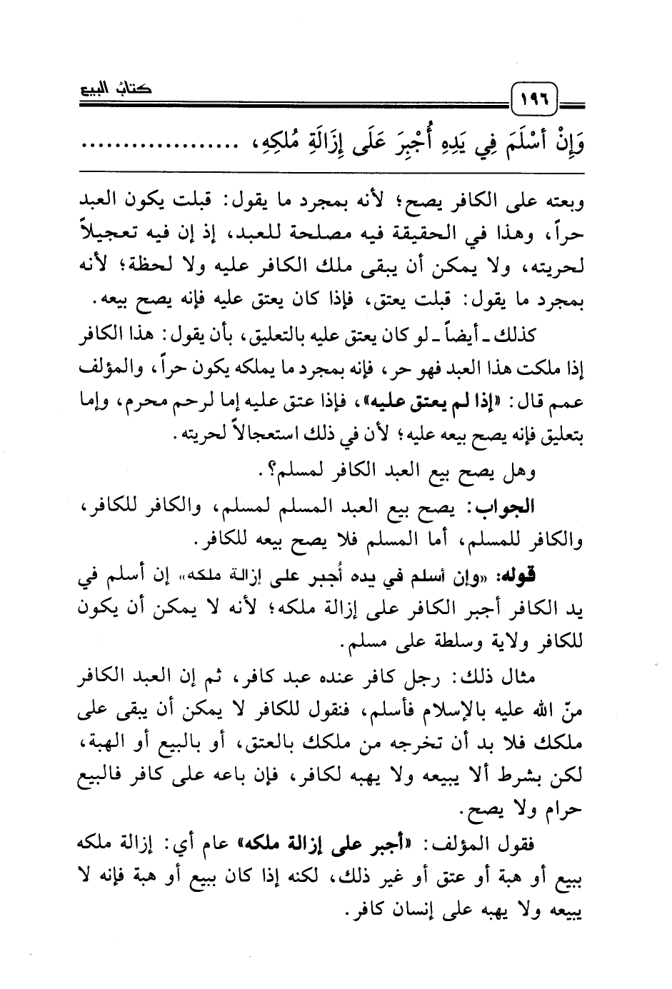 قوله: «وإن أسلم في يده أُجبر على إزالة ملكه» إن أسلم في يد الكافر أجبر الكافر على إزالة ملكه؛ لأنه لا يمكن أن يكون للكافر ولاية وسلطة على مسلم.