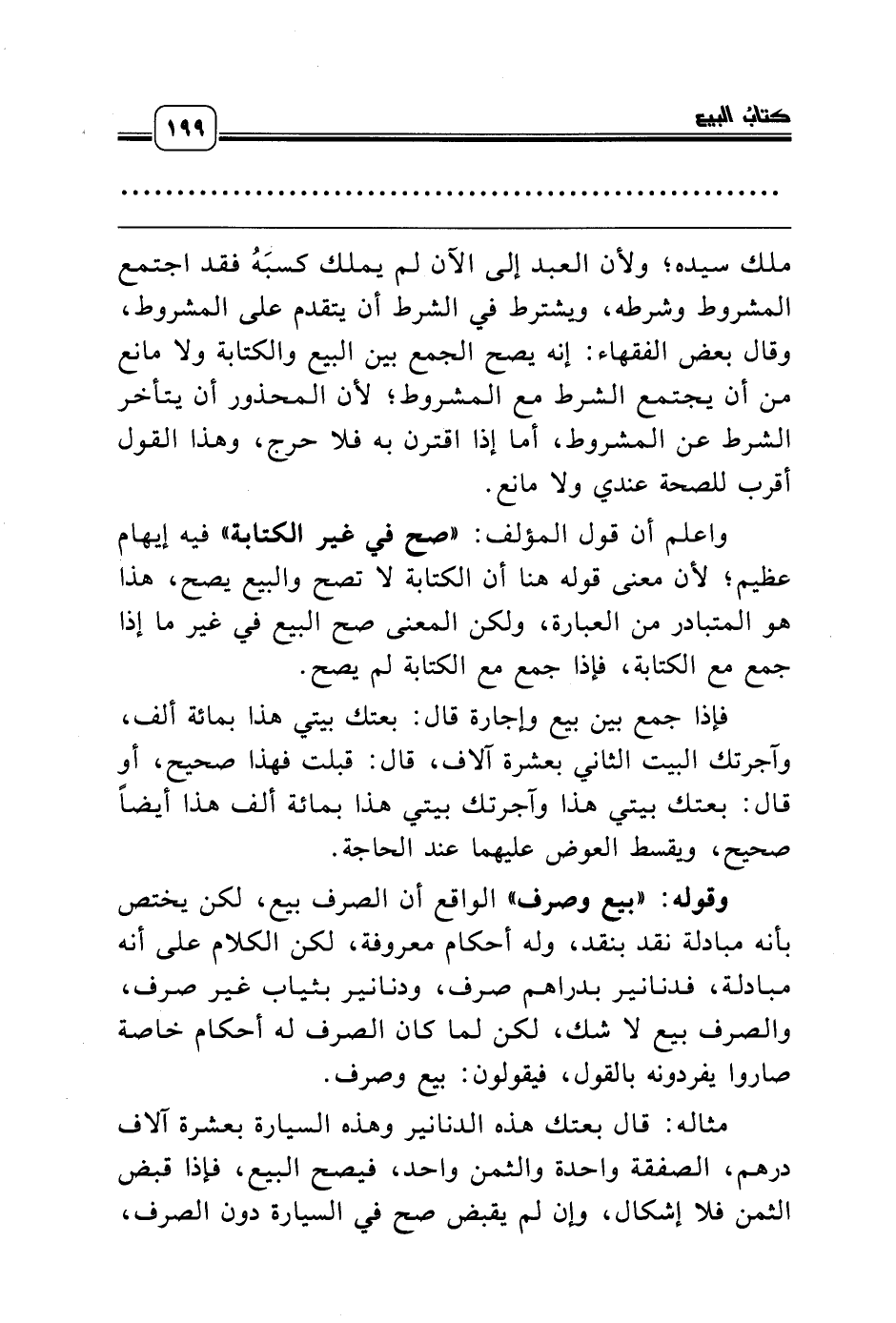 على ملك سيده؛ ولأن العبد إلى الآن لم يملك كسبَهُ فقد اجتمع المشروط وشرطه، ويشترط في الشرط أن يتقدم على المشروط، وقال بعض الفقهاء: إنه يصح الجمع بين البيع والكتابة ولا مانع من أن يجتمع الشرط مع المشروط؛ لأن المحذور أن يتأخر الشرط عن المشروط، أما إذا اقترن به فلا حرج، وهذا القول أقرب للصحة عندي ولا مانع.