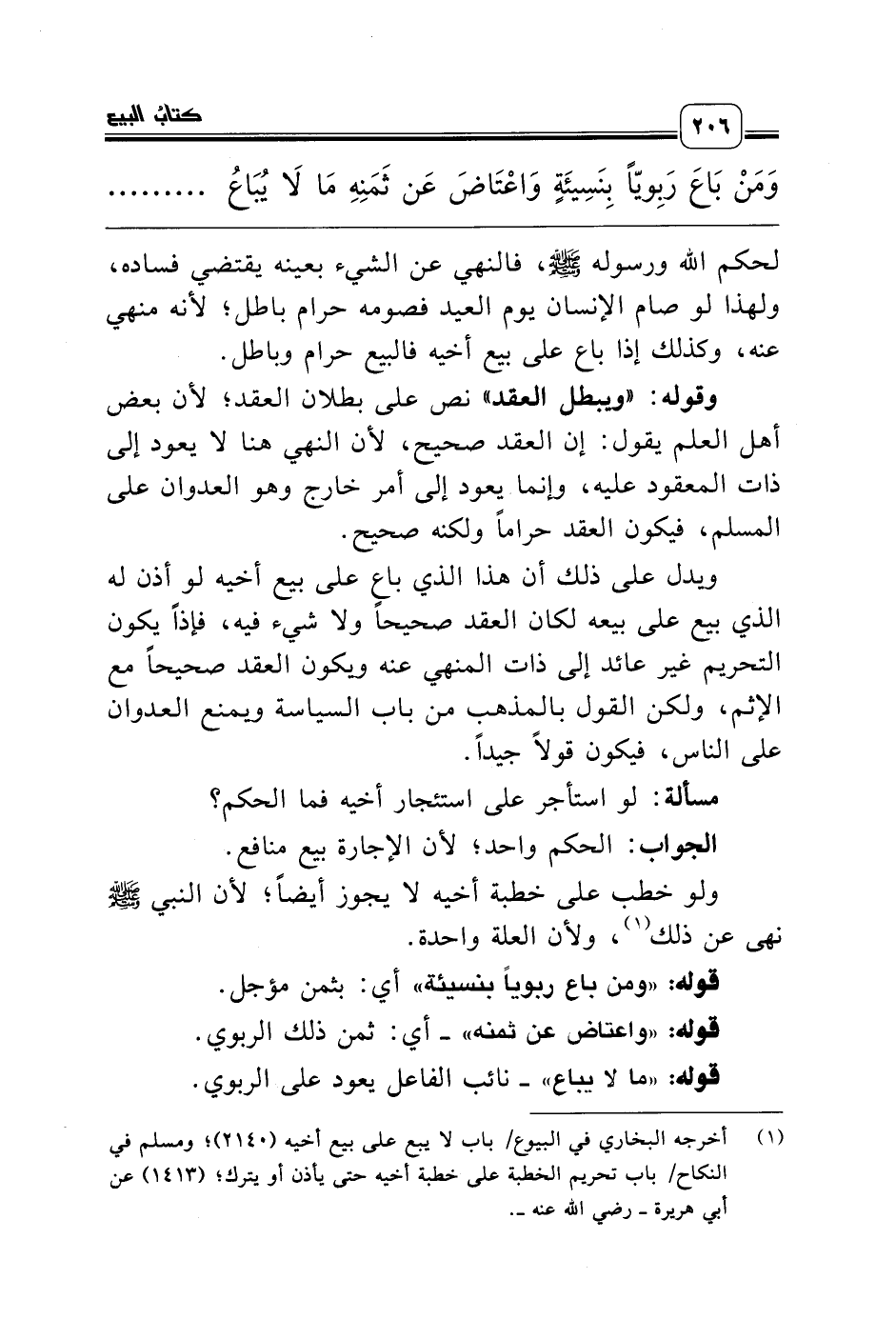 (¬1) أخرجه البخاري في البيوع/ باب لا يبع على بيع أخيه (2140)؛ ومسلم في النكاح/ باب تحريم الخطبة على خطبة أخيه حتى يأذن أو يترك؛ (1413) عن أبي هريرة ـ رضي الله عنه ـ.