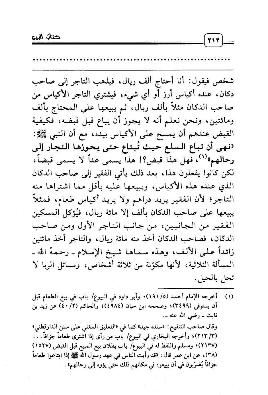 (¬1) أخرجه الإمام أحمد (5/ 191)؛ وأبو داود في البيوع/ باب في بيع الطعام قبل أن يستوفى (3499)؛ وصححه ابن حبان (4984)؛ والحاكم (2/ 40) عن زيد بن ثابت ـ رضي الله عنه ـ.