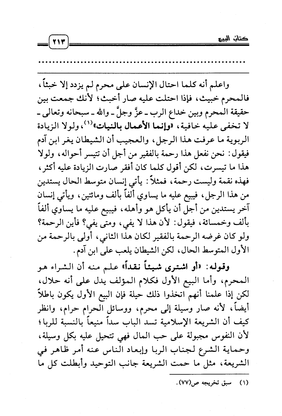 واعلم أنه كلما احتال الإنسان على محرم لم يزدد إلا خبثاً، فالمحرم خبيث، فإذا احتلت عليه صار أخبث؛ لأنك جمعت بين حقيقة المحرم وبين خداع الرب ـ عزّ وجل ـ والله ـ سبحانه وتعالى ـ لا تخفى عليه خافية، «وإنما الأعمال بالنيات» (¬1)، ولولا الزيادة الربوية ما عرفت هذا الرجل، والعجيب أن الشيطان يغر ابن آدم فيقول: نحن نفعل هذا رحمة بالفقير من أجل أن تتيسر أحواله، ولولا هذا ما تيسرت، لكن أقول كلما كان أفقر صارت الزيادة عليه أكثر، فهذه نقمة وليست رحمة، فمثلاً: يأتي إنسان متوسط الحال يستدين من هذا الرجل، فيبيع عليه ما يساوي ألفاً بألف ومائتين، ويأتي إنسان آخر يستدين من أجل أن يأكل هو وأهله، فيبيع عليه ما يساوي ألفاً بألف وخمسائة، فيقول: لأن هذا لا يفي، ومتى يفي؟ فأين الرحمة؟ ولو كان غرضه الرحمة بالفقير لكان هذا الثاني، أولى بالرحمة من الأول المتوسط الحال، لكن الشيطان يلعب على ابن آدم.