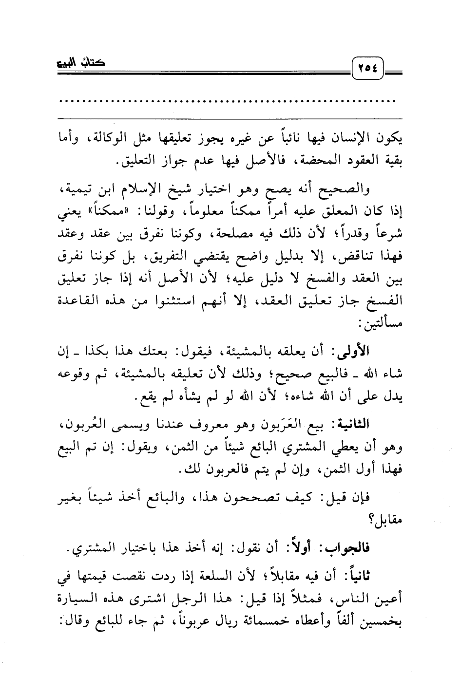 الثانية: بيع العَرَبون وهو معروف عندنا ويسمى العُربون، وهو أن يعطي المشتري البائع شيئاً من الثمن، ويقول: إن تم البيع فهذا أول الثمن، وإن لم يتم فالعربون لك.