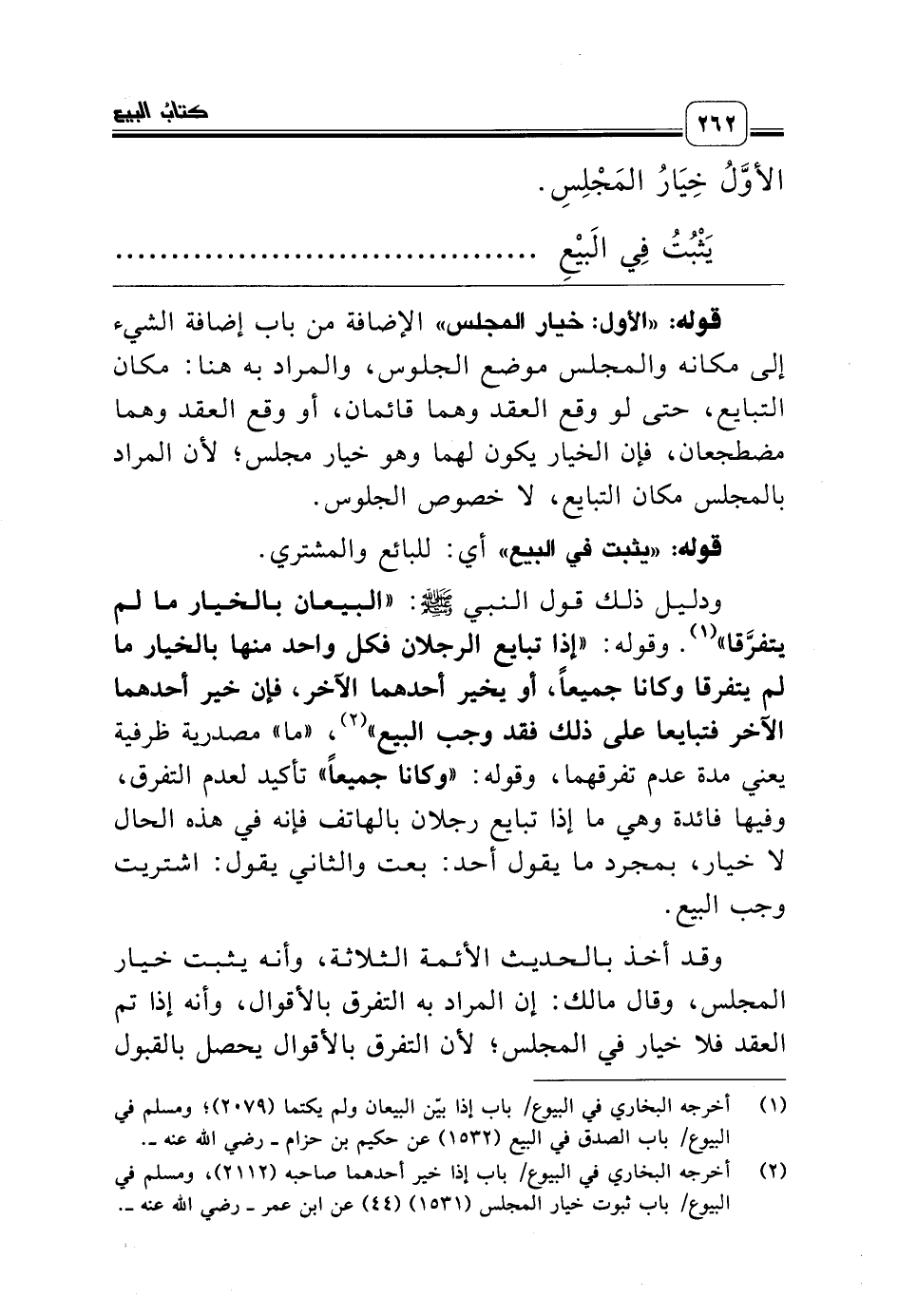 (¬2) أخرجه البخاري في البيوع/ باب إذا خير أحدهما صاحبه (2112)، ومسلم في البيوع/ باب ثبوت خيار المجلس (1531) (44) عن ابن عمر ـ رضي الله عنه ـ.