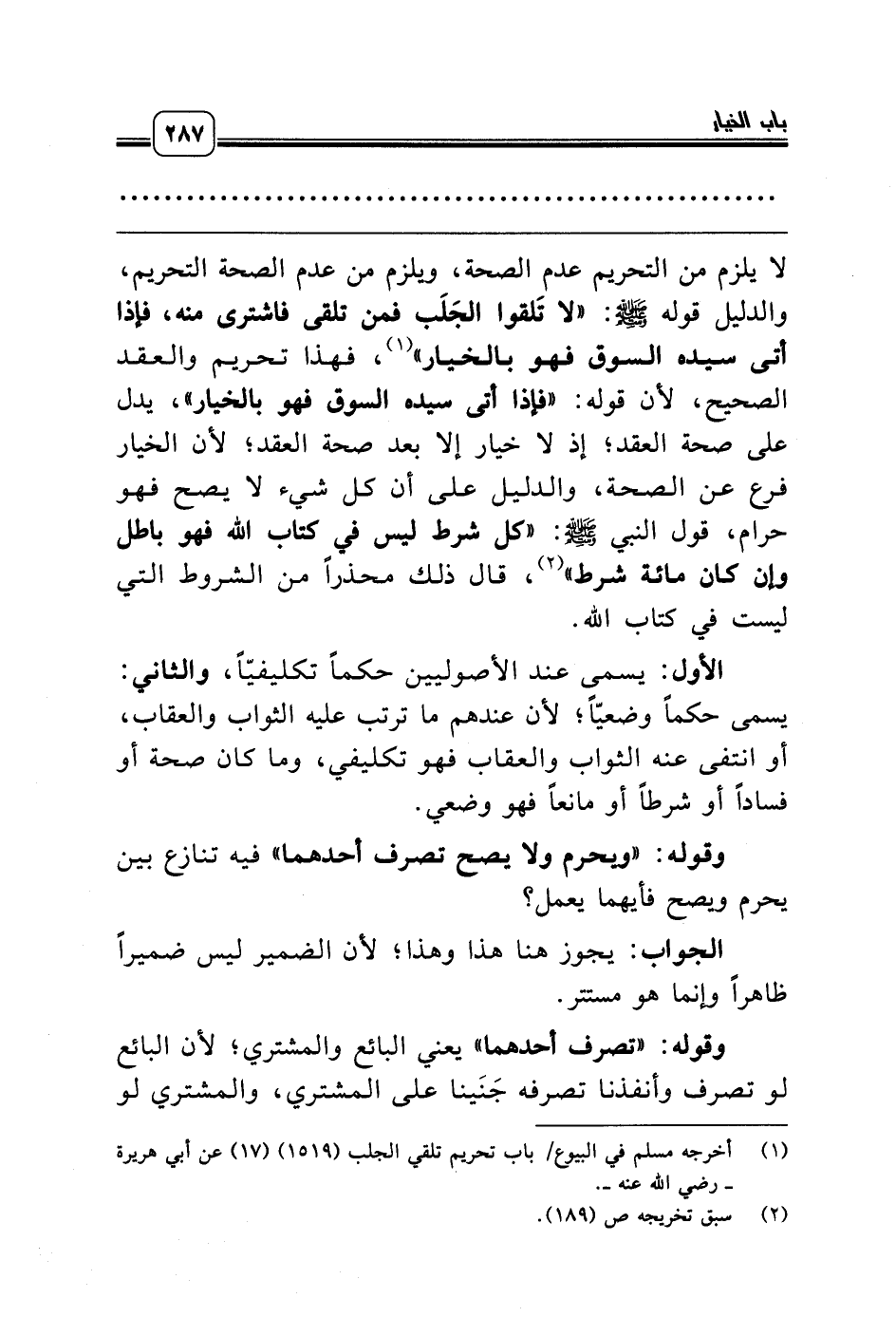 (¬1) أخرجه مسلم في البيوع/ باب تحريم تلقي الجلب (1519) (17) عن أبي هريرة ـ رضي الله عنه ـ.