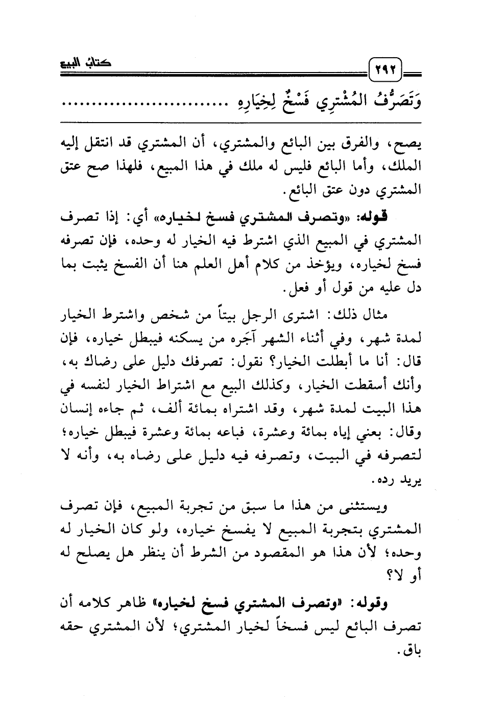 وقوله: «وتصرف المشتري فسخ لخياره» ظاهر كلامه أن تصرف البائع ليس فسخاً لخيار المشتري؛ لأن المشتري حقه باق.