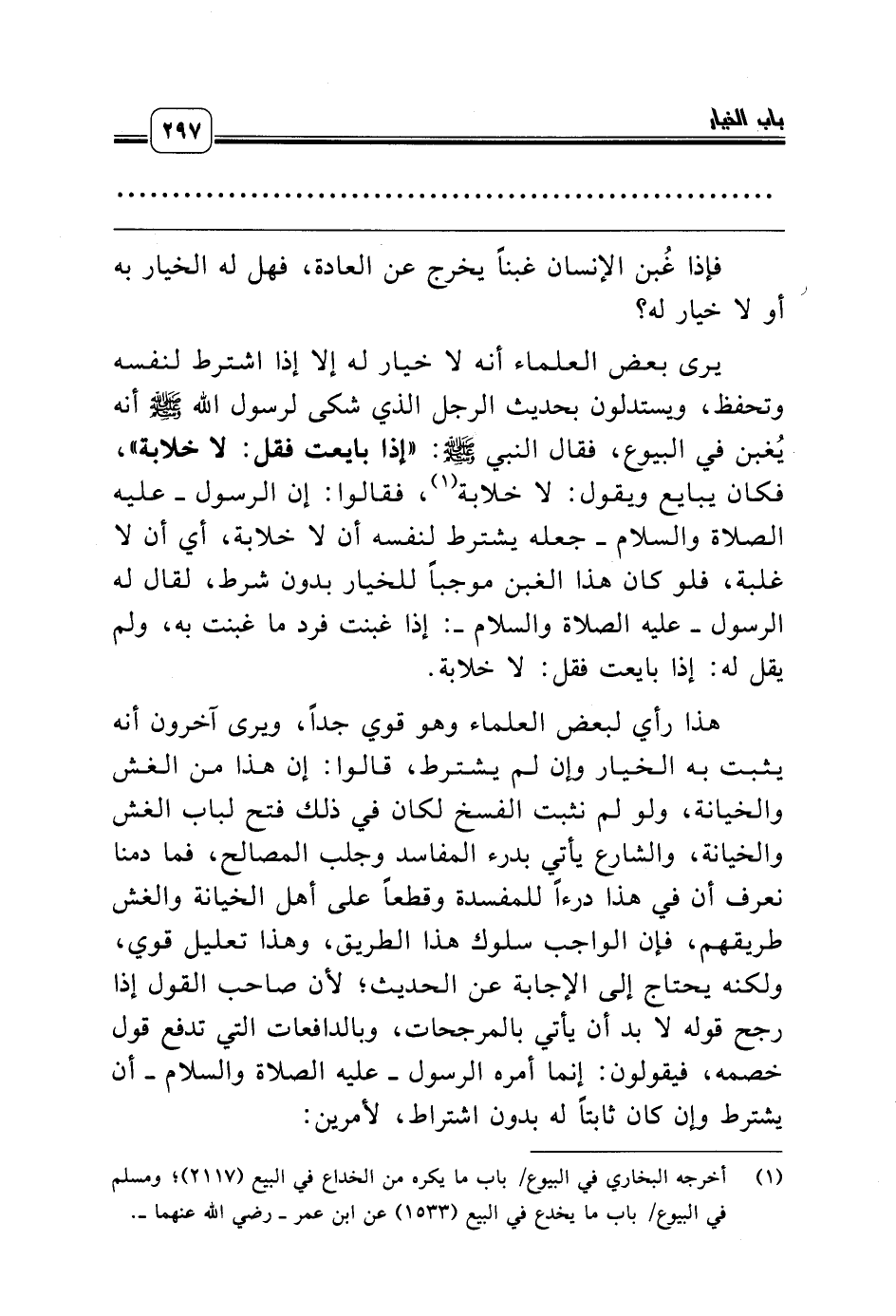 (¬1) أخرجه البخاري في البيوع/ باب ما يكره من الخداع في البيع (2117)؛ ومسلم في البيوع/ باب ما يخدع في البيع (1533) عن ابن عمر ـ رضي الله عنهما ـ.