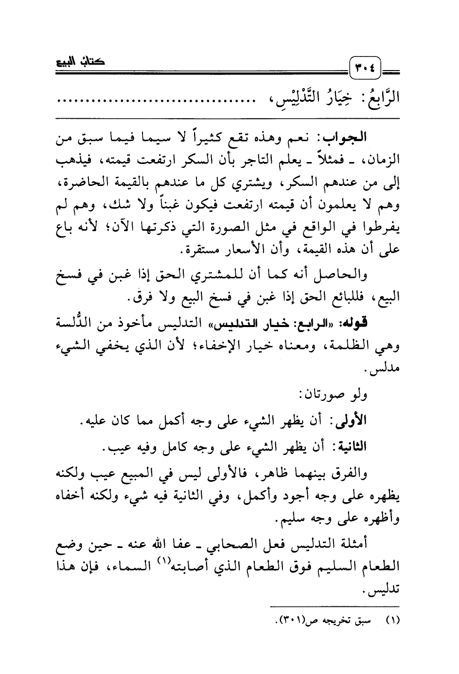 قوله: «الرابع: خيار التدليس» التدليس مأخوذ من الدُّلسة وهي الظلمة، ومعناه خيار الإخفاء؛ لأن الذي يخفي الشيء مدلس.