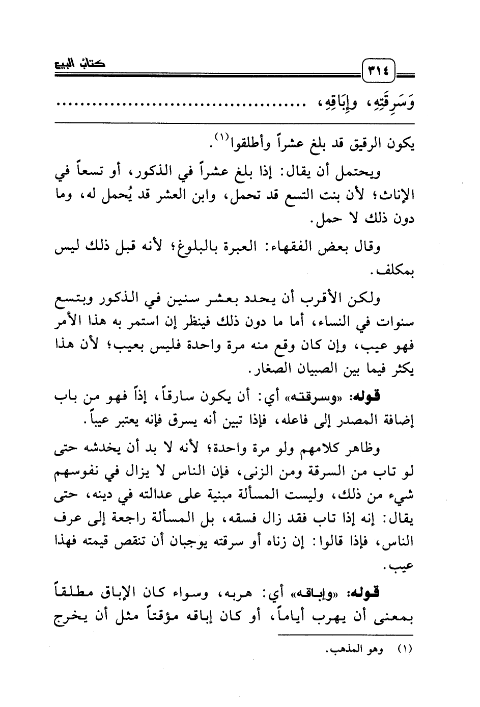ولكن الأقرب أن يحدد بعشر سنين في الذكور وبتسع سنوات في النساء، أما ما دون ذلك فينظر إن استمر به هذا الأمر فهو عيب، وإن كان وقع منه مرة واحدة فليس بعيب؛ لأن هذا يكثر فيما بين الصبيان الصغار.