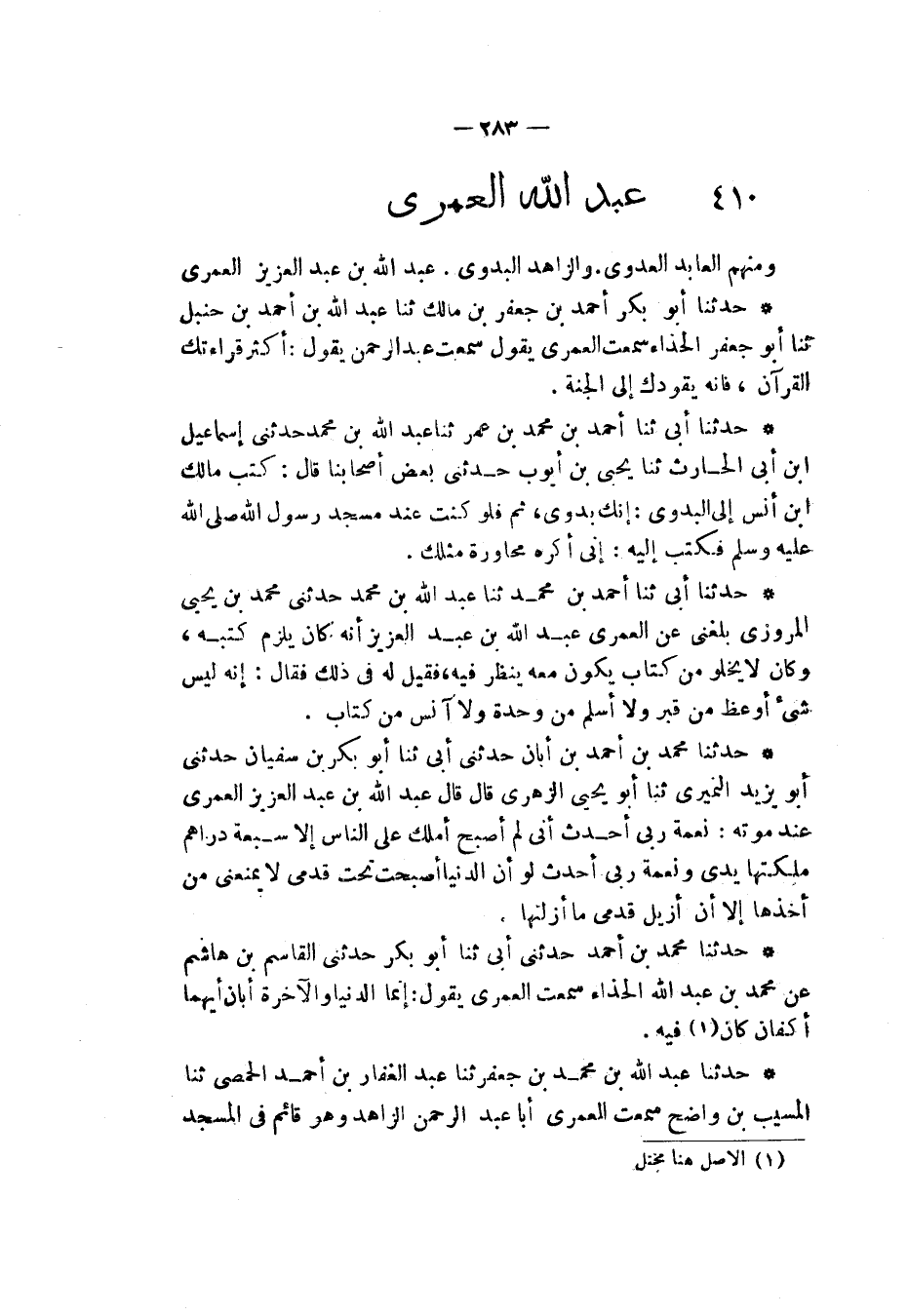 §عَبْدُ اللهِ الْعُمَرِيُّ وَمِنْهُمُ الْعَابِدُ الْعَدَوِيُّ وَالزَّاهِدُ الْبَدَوِيُّ عَبْدُ اللهِ بْنُ عَبْدِ الْعَزِيزِ الْعُمَرِيُّ