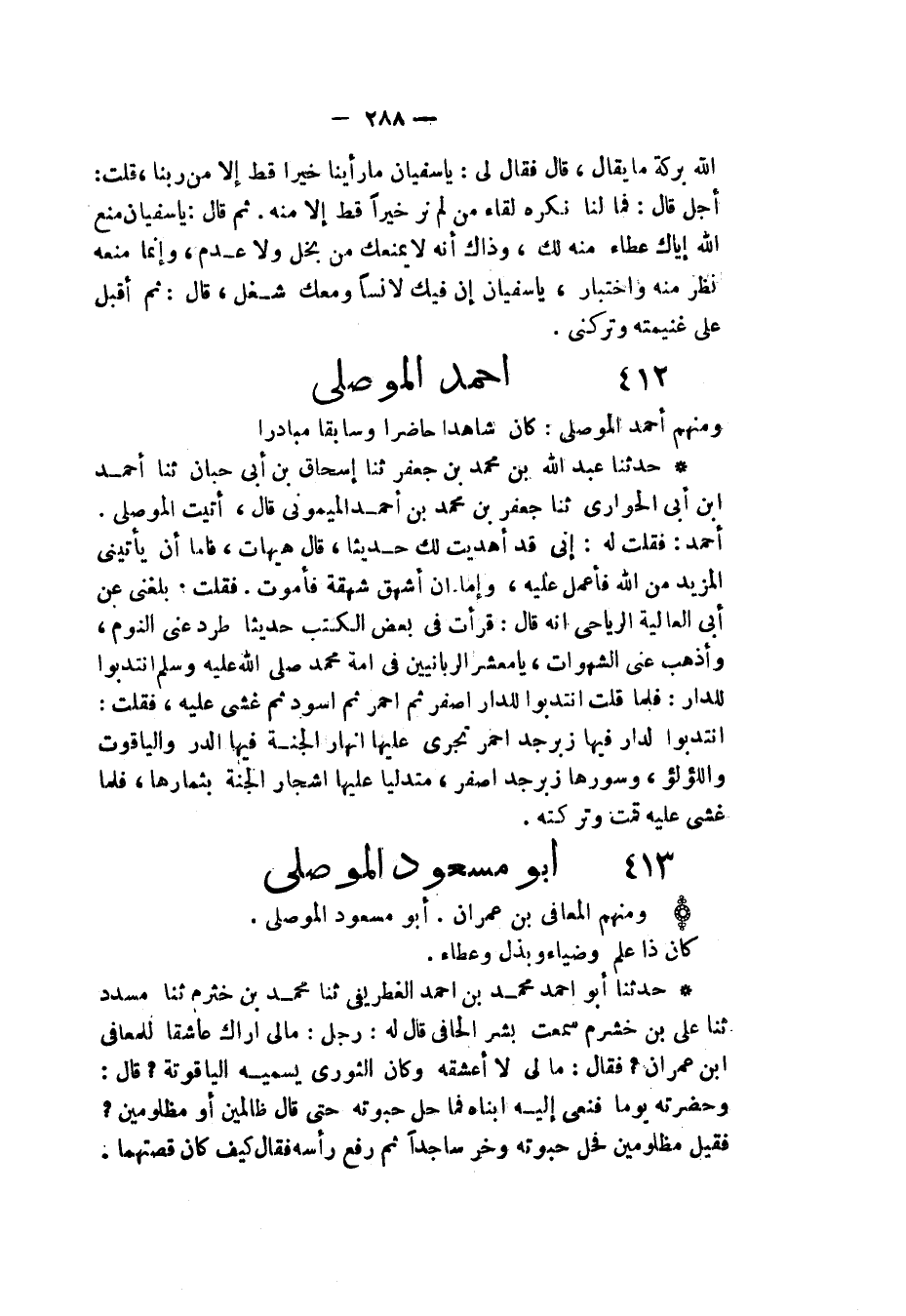 §أَبُو مَسْعُودٍ الْمَوْصِلِيُّ وَمِنْهُمُ الْمُعَافَى بْنُ عِمْرَانَ أَبُو مَسْعُودٍ الْمَوْصِلِيُّ كَانَ ذَا عِلْمٍ وَضِيَاءٍ وَبَذْلٍ وَعَطَاءٍ