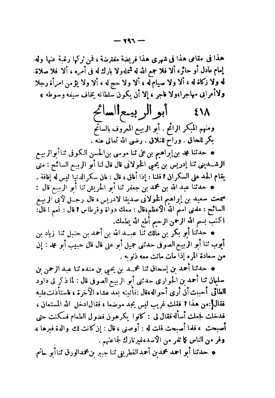 §أَبُو الرَّبِيعِ السَّائِحُ وَمِنْهُمُ الْمُبَكِّرُ الرَّائِحُ أَبُو الرَّبِيعِ الْمَعْرُوفُ بِالسَّائِحِ بَكَّرَ لِلِّحَاقِ وَرَاحَ لِلتَّلَاقِ , رَضِيَ اللهُ تَعَالَى عَنْهُ
