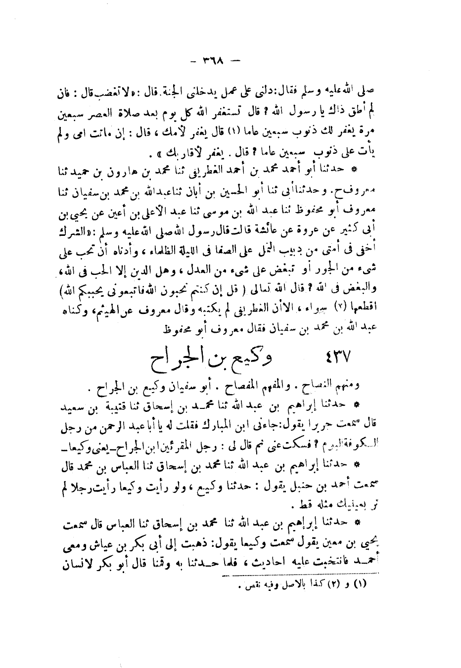 §وَكِيعُ بْنُ الْجَرَّاحِ وَمِنْهُمُ النَّصَّاحُ وَالْمُفْهِمُ الْمِفْصَاحُ أَبُو سُفْيَانَ وَكِيعُ بْنُ الْجَرَّاحِ