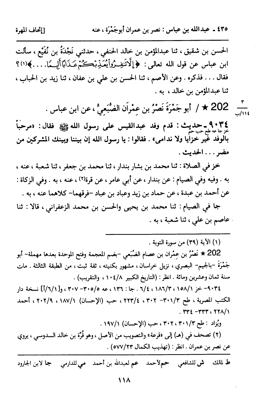 ـ أَبُو جَمْرَةَ نَصْرُ بْنُ عِمْرَانَ الضُّبَعِيُّ، عَنِ ابْنِ عَبَّاسٍ