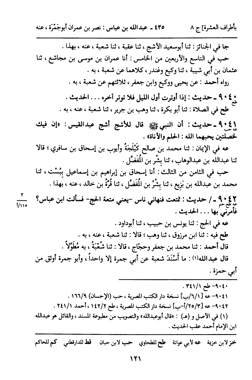9042 - حَدِيثُ حم: " تَمَتَّعْتُ فَنَهَانِي نَاسٌ، يَعْنِي: مُتْعَةَ الْحَجِّ، فَسَأَلْتُ ابْنَ عَبَّاسٍ؟ فَأَمَرَنِي بِهَا. . . " الْحَدِيثَ.