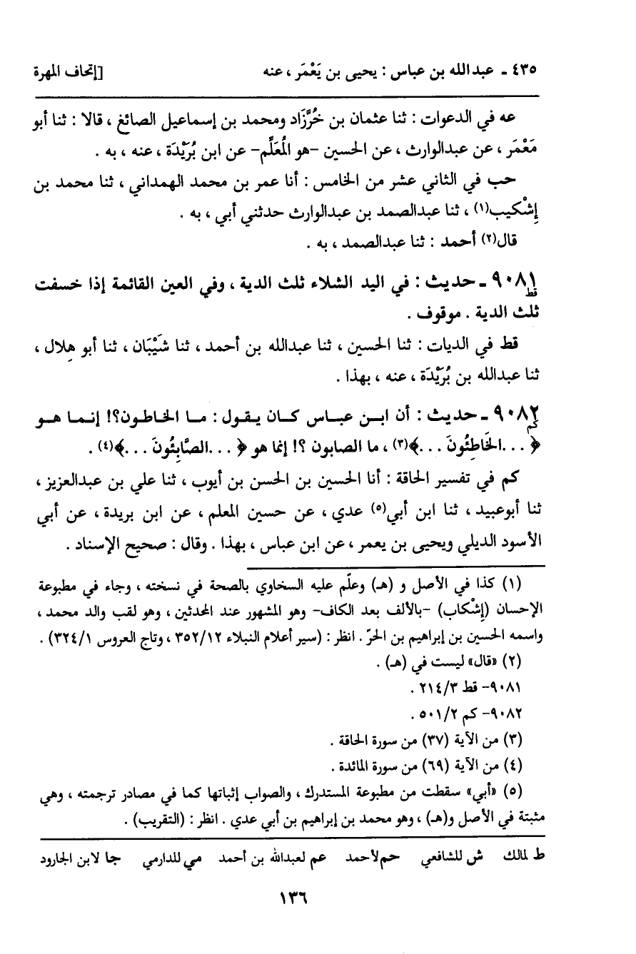 9082 - حَدِيثُ كم: " أَنَّ ابْنَ عَبَّاسٍ كَانَ يَقُولُ: مَا الْخَاطُونَ؟! إِنَّمَا هُوَ..الْخَاطِئُونَ..، مَا الصَّابُونَ؟ ! إِنَّمَا هُوَ ... الصَّابِئُونَ ... 4 " الْحَدِيثَ.