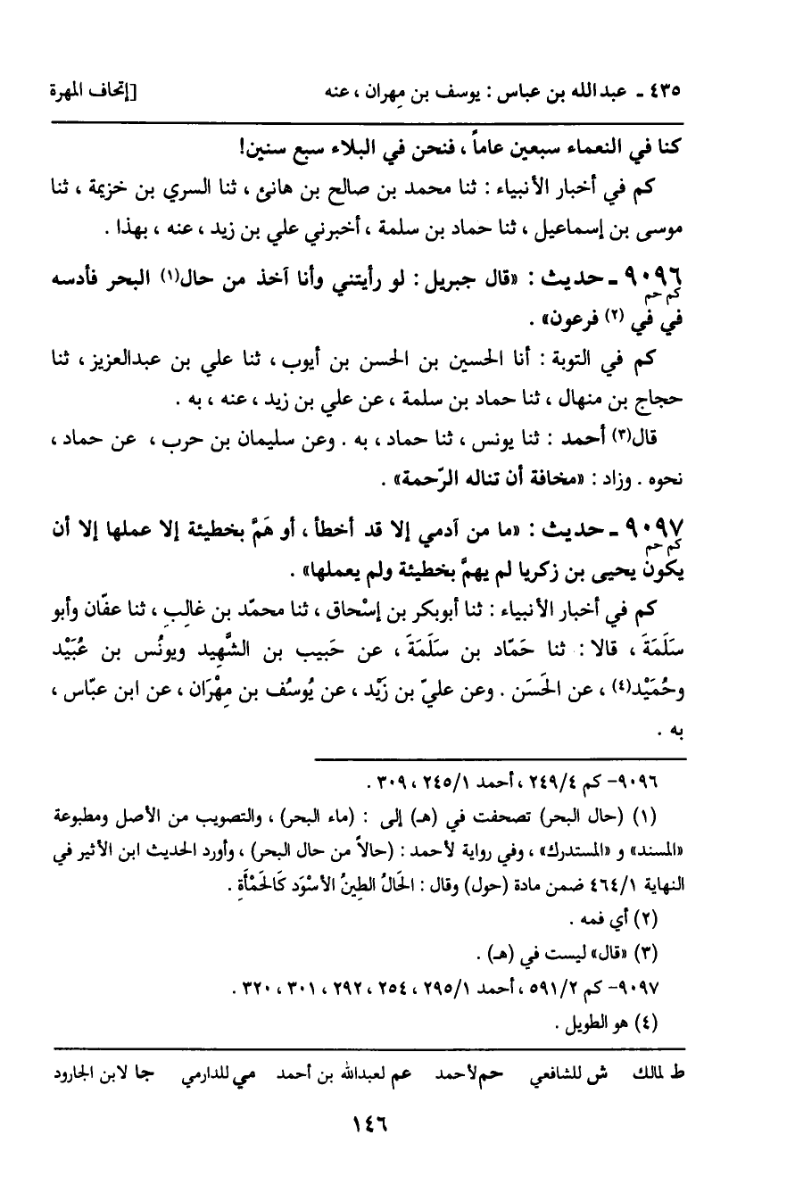 9097 - حَدِيثُ كم حم: " مَا مِنْ آدَمِيٍّ إِلا قَدْ أَخْطَأَ، أَوْ هَمَّ بِخَطِيئَةٍ إِلا عَمِلَهَا إِلا أَنْ يَكُونَ يَحْيَى بْنَ زَكَرِيَّا لَمْ يَهِمَّ بِخَطِيئَةٍ وَلَمْ يَعْمَلْهَا " الْحَدِيثَ.