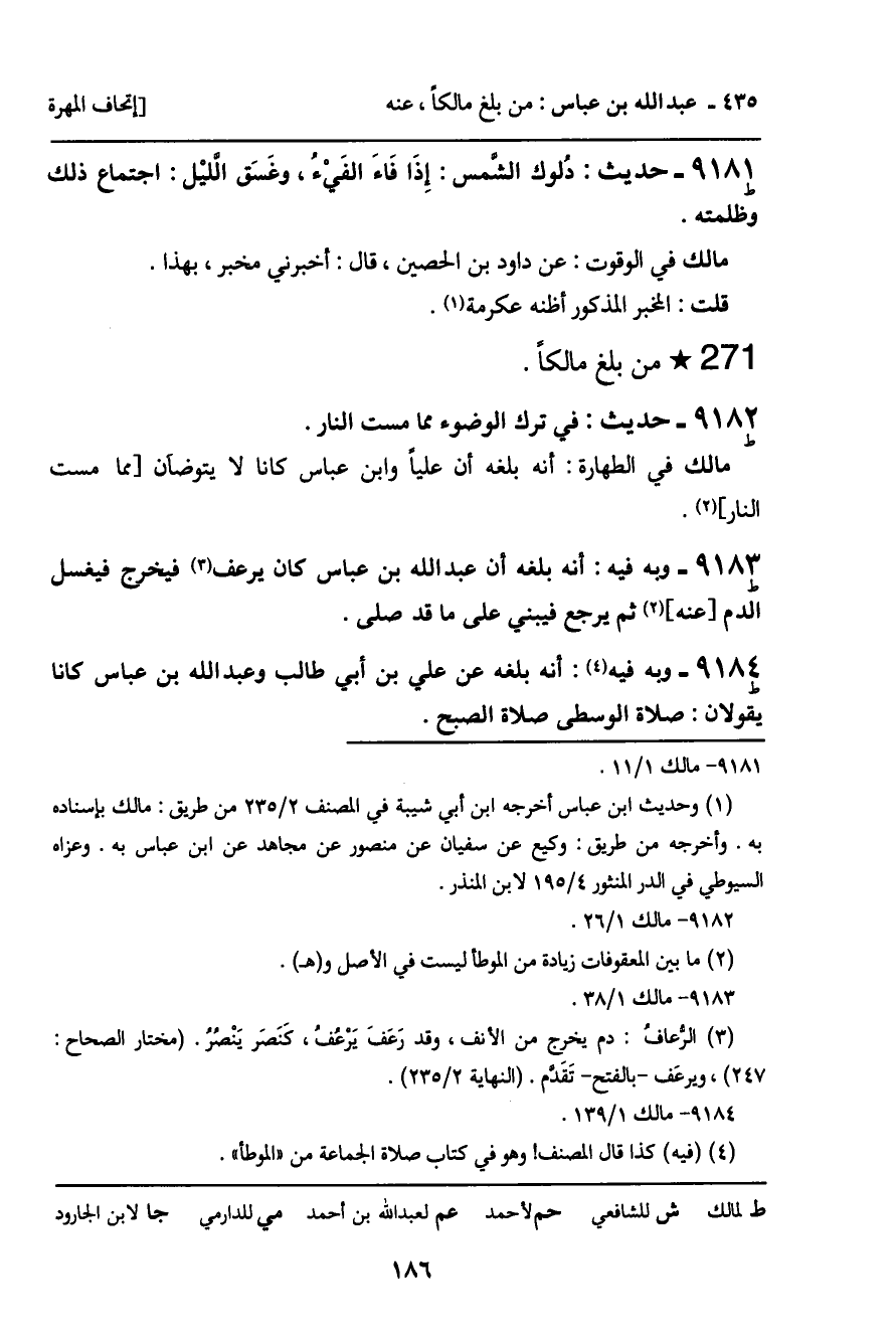 9183 - حَدِيثُ ط: " وَبِهِ فِيهِ أَنَّهُ بَلَغَهُ أَنَّ عَبْدَ اللَّهِ بْنَ عَبَّاسٍ كَانَ يَرْعُفُ فَيَخْرُجُ فَيَغْسِلُ الدَّمَ عَنْهُ ثُمَّ يَرْجِعُ فَيَبْنِي عَلَى مَا قَدْ صَلَّى " الْحَدِيثَ.