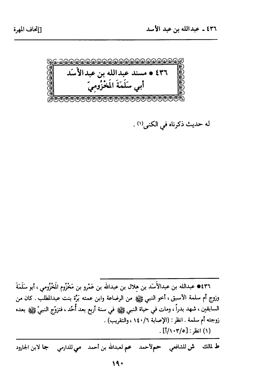 436 ـ مسند عَبْدِ اللَّهِ بْنِ عَبْدِ الأَسَدِ أَبِي سَلَمَةَ الْمَخْزُومِيُّ