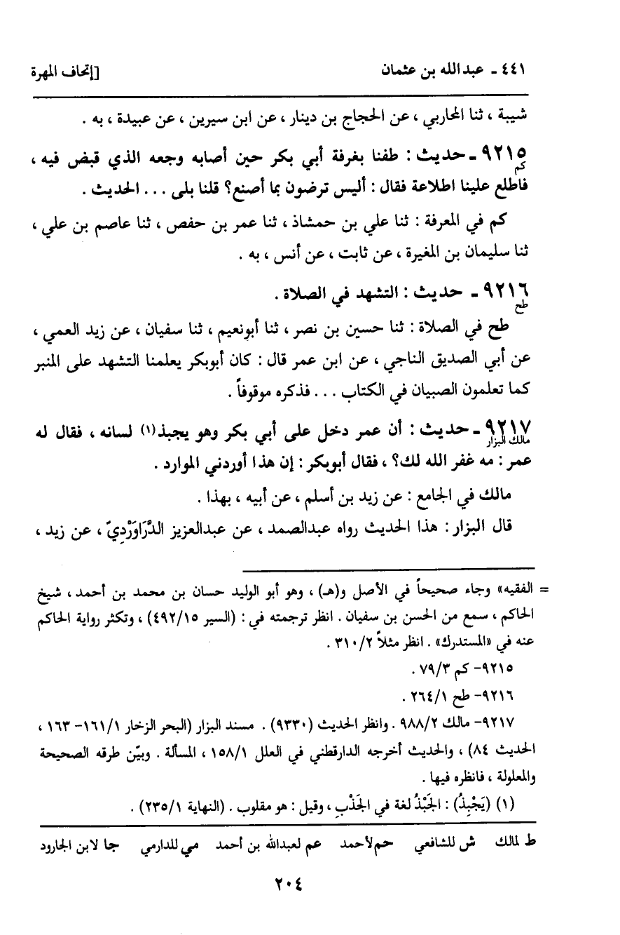 9216 - حَدِيثُ: " التَّشَهُّدُ فِي الصَّلاةِ " الْحَدِيثَ.